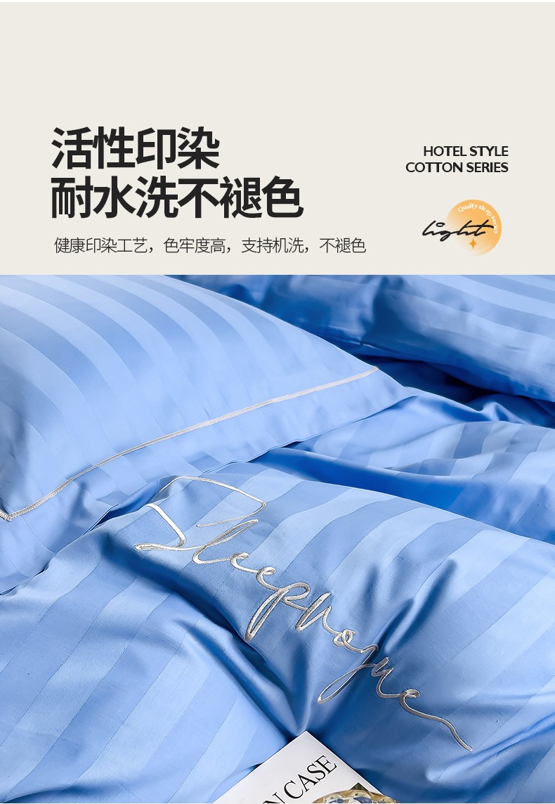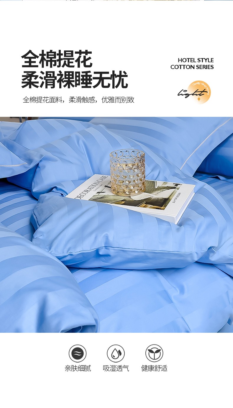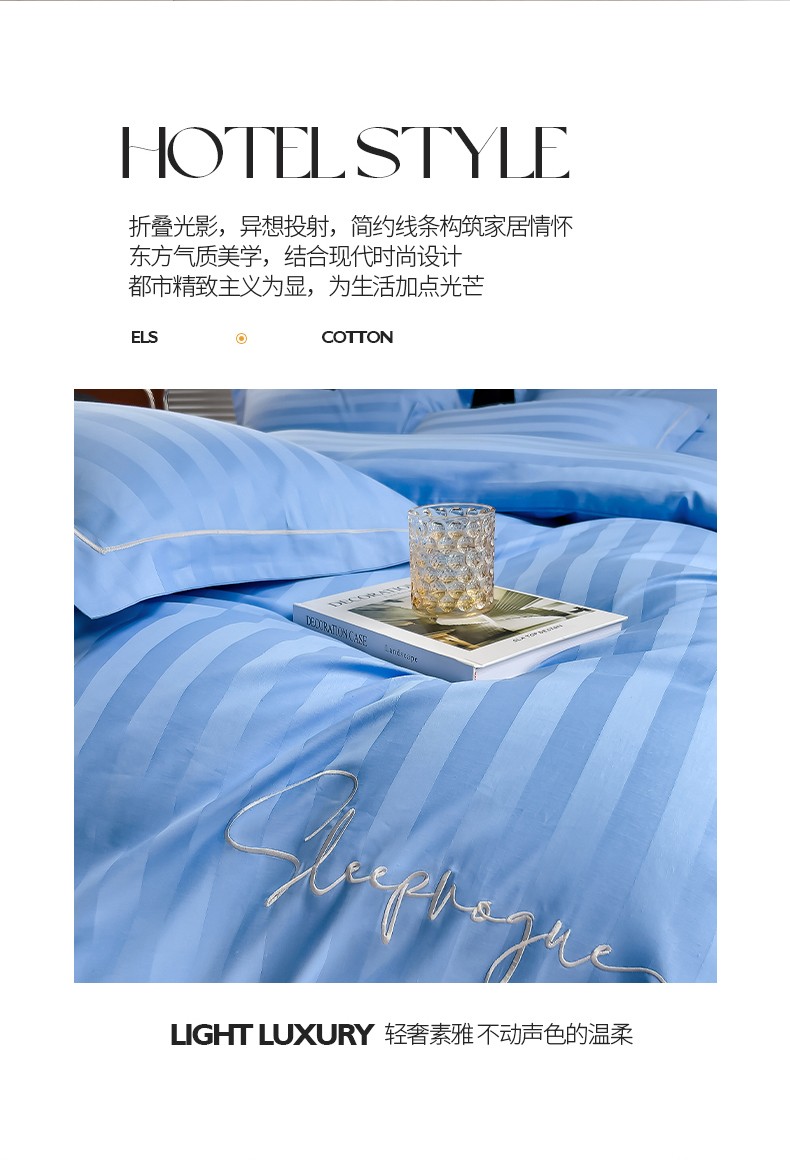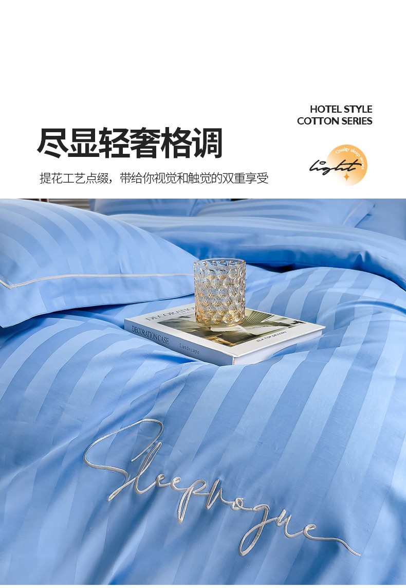 商品名称:慕尚 2025新款60支长绒棉提花条纹系列单品被套 条纹天兰
