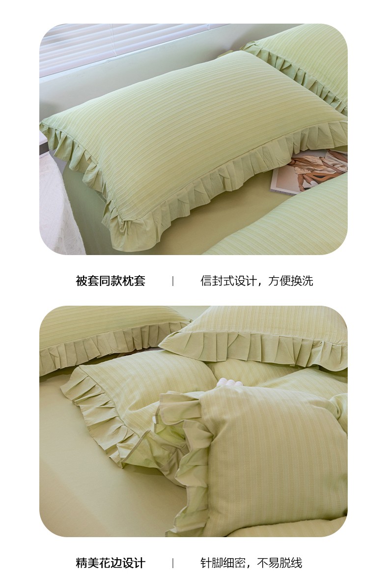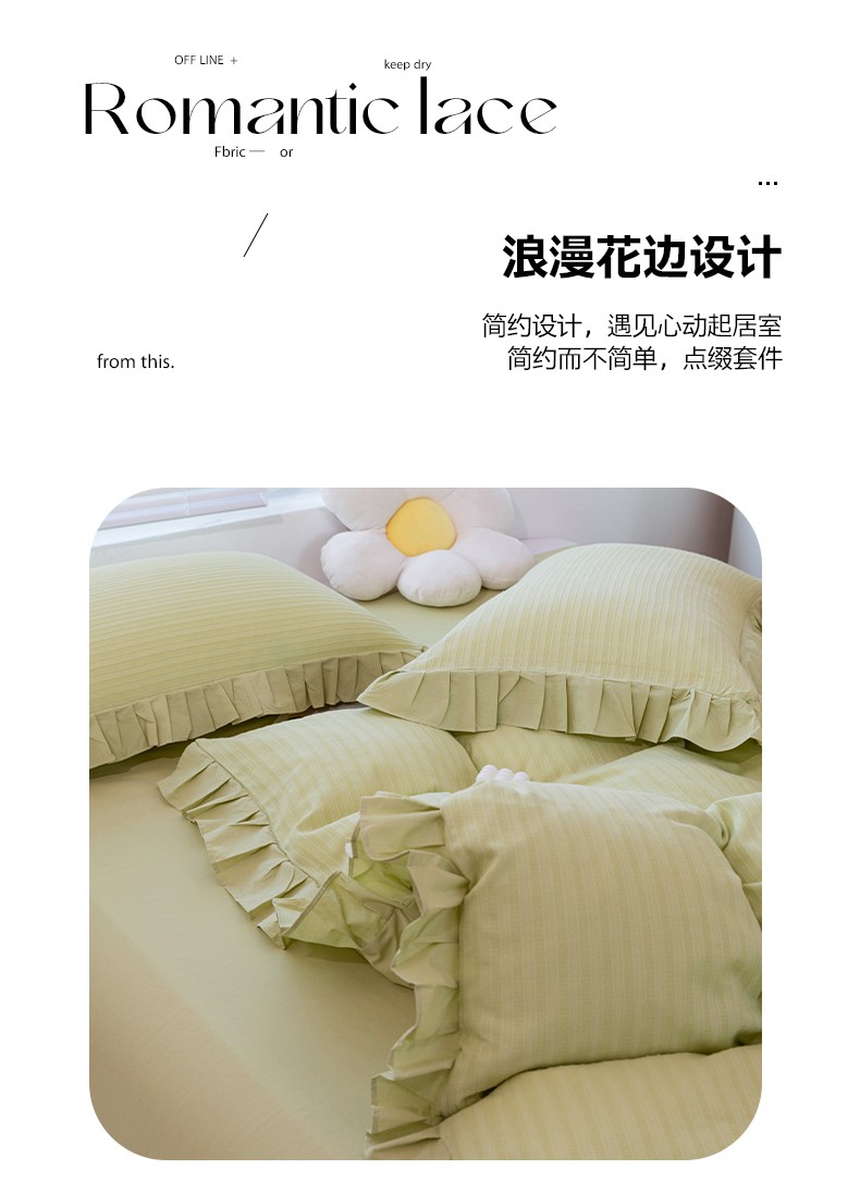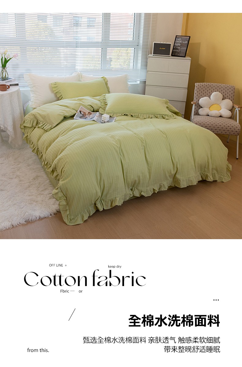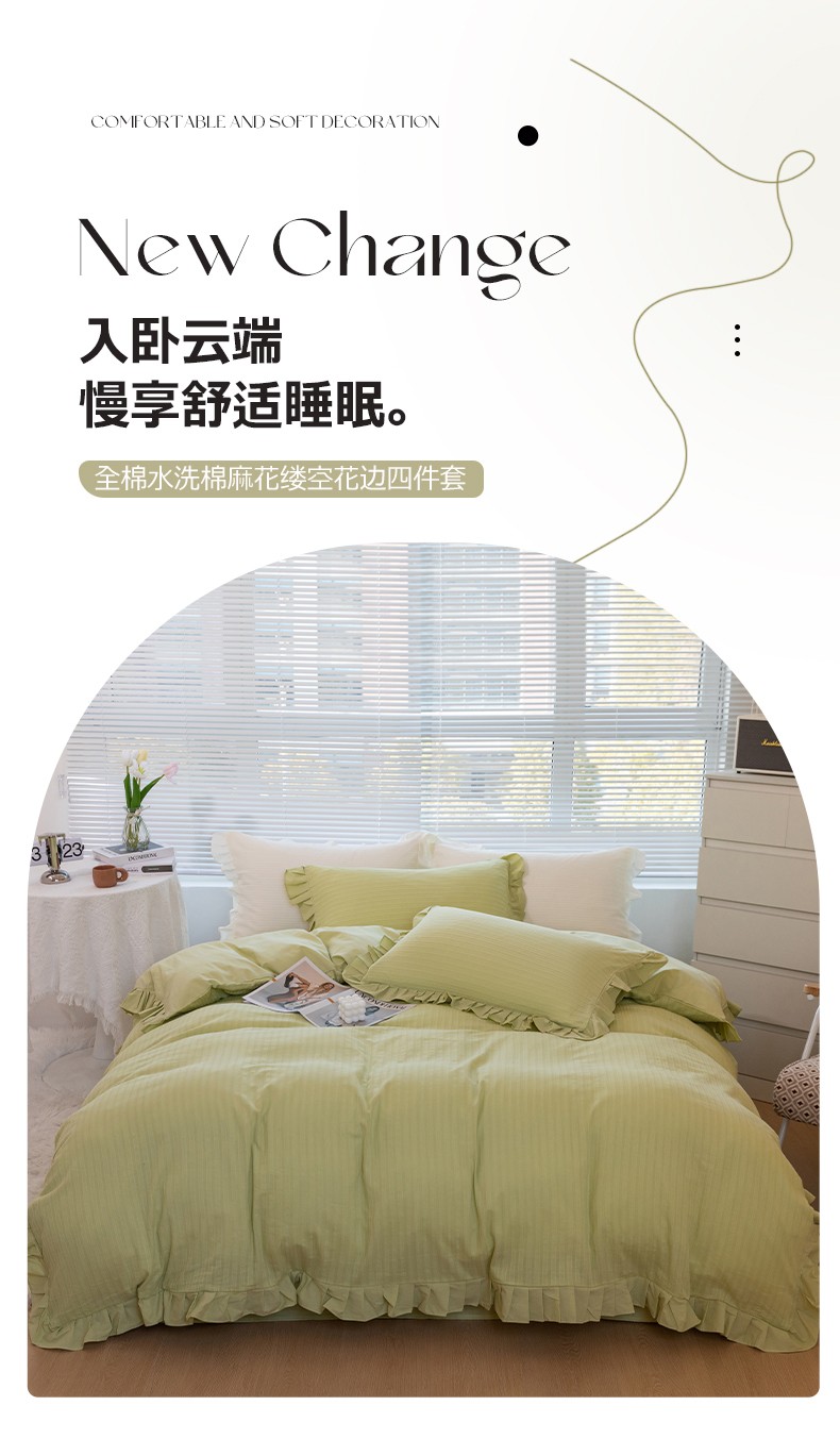 商品名称:慕尚 2025新款全棉镂空水洗棉四件套 沉香-嫩芽绿