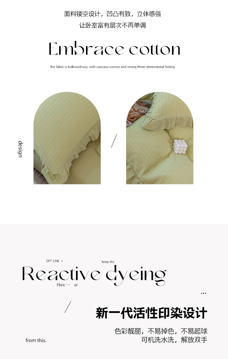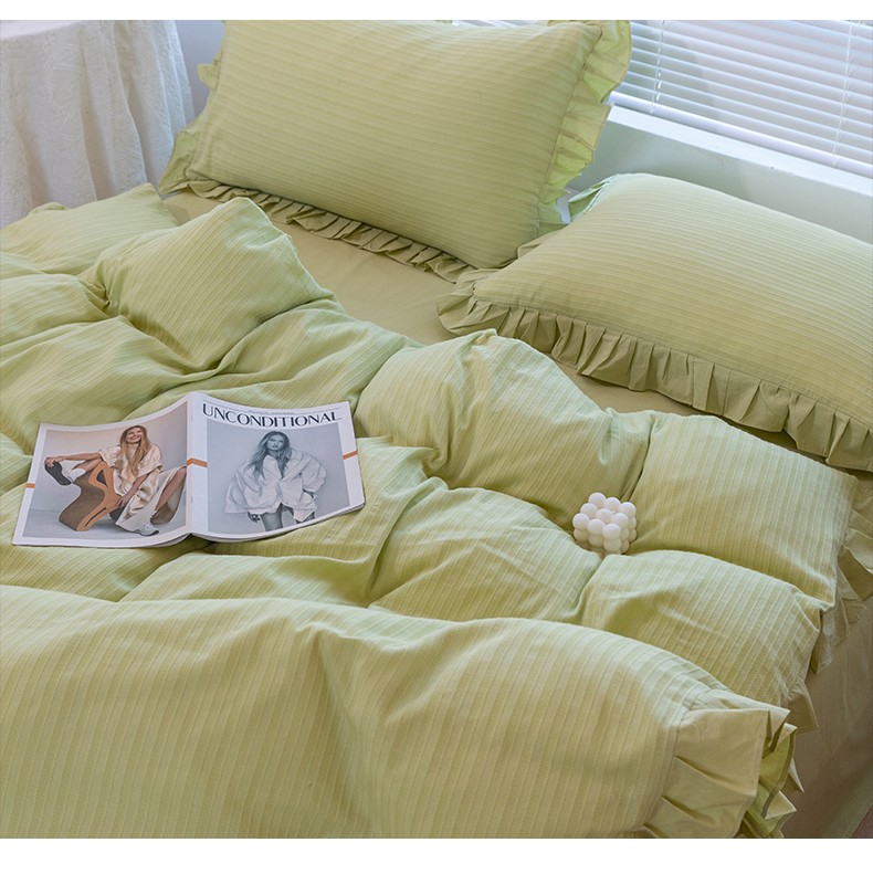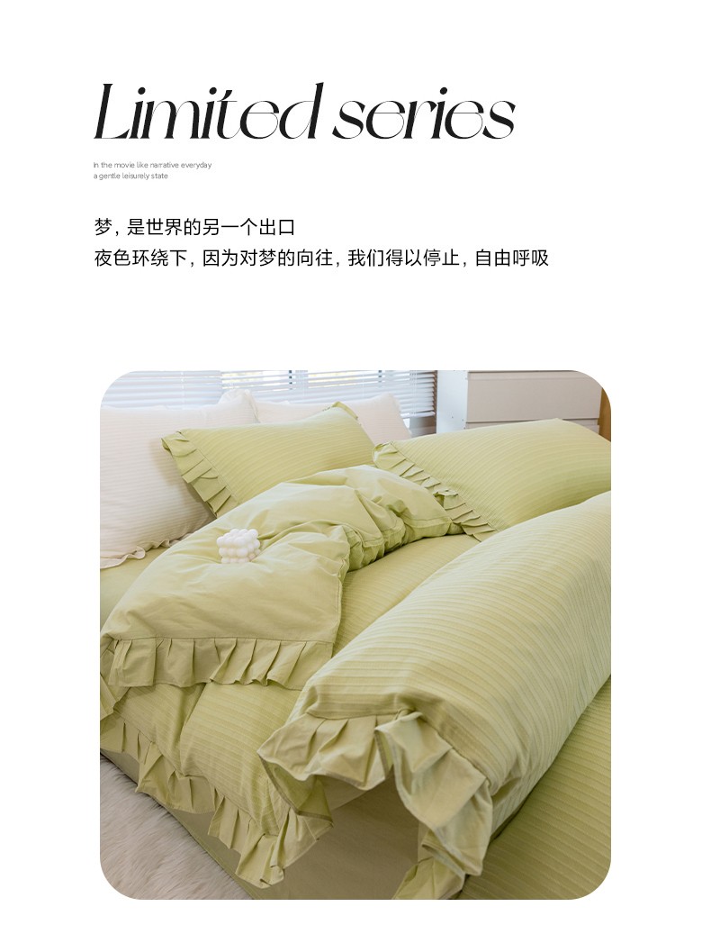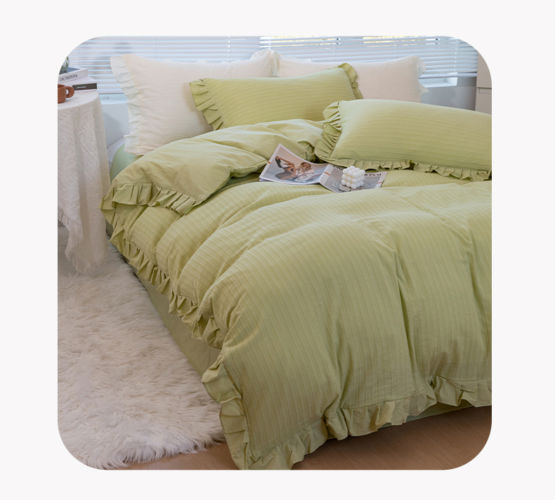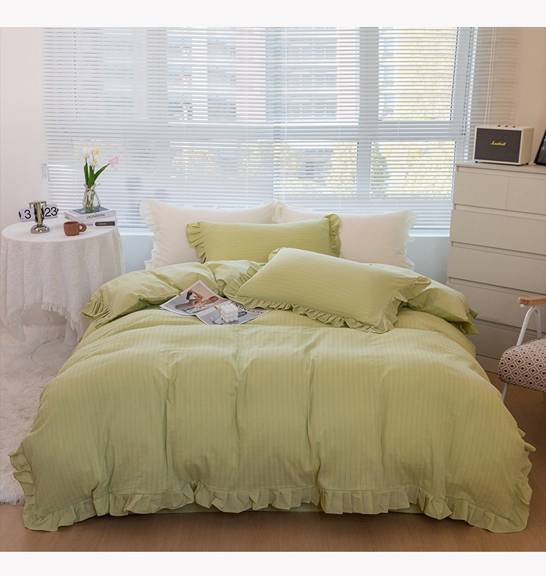 商品名称:慕尚 2025新款全棉镂空水洗棉四件套 沉香-嫩芽绿