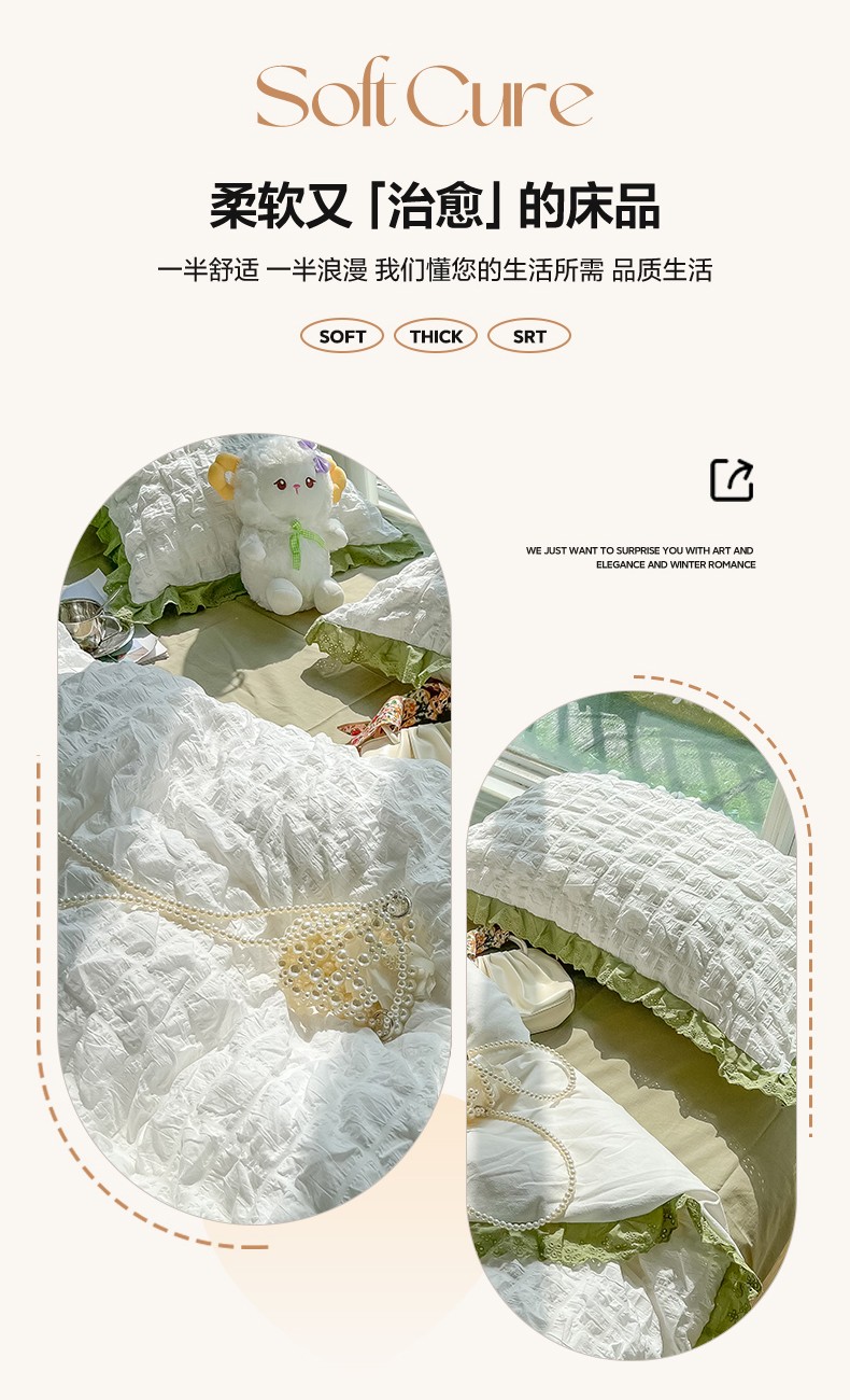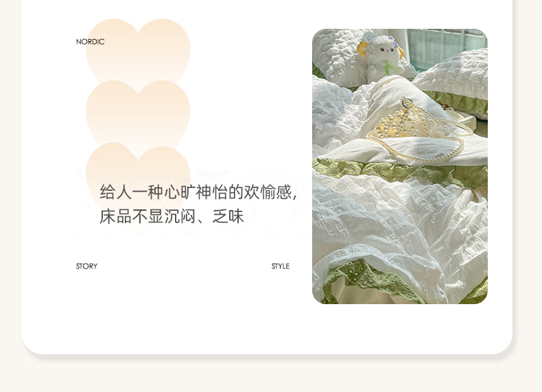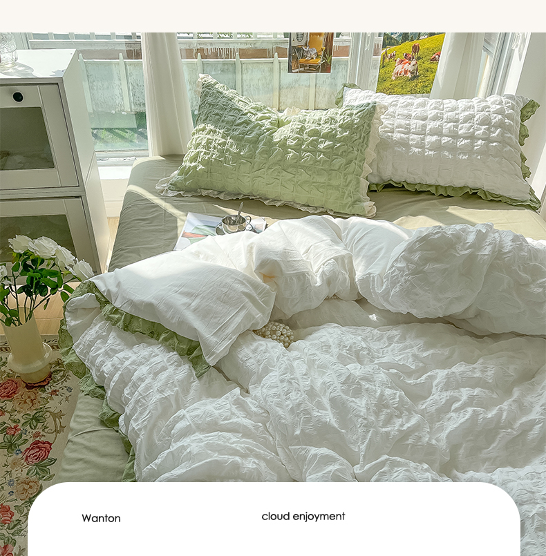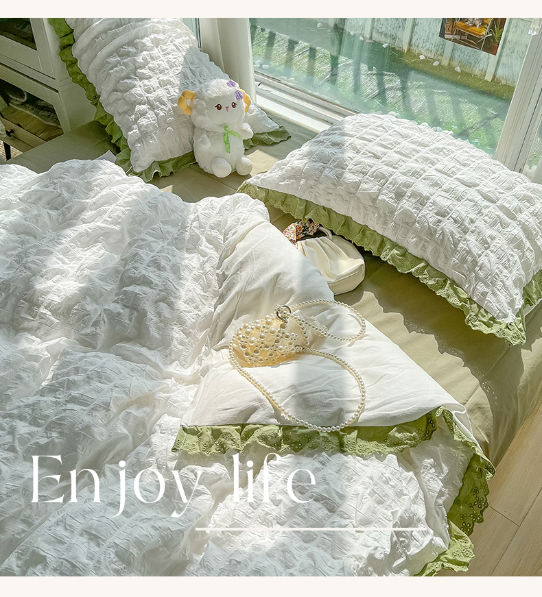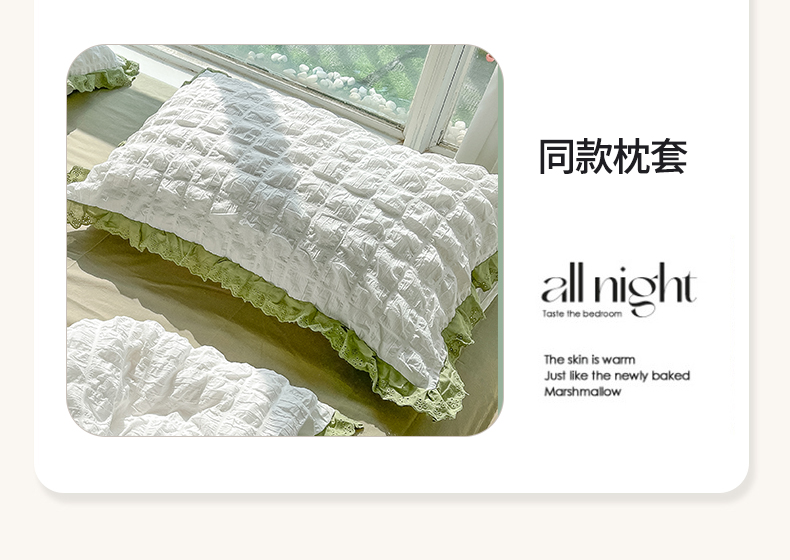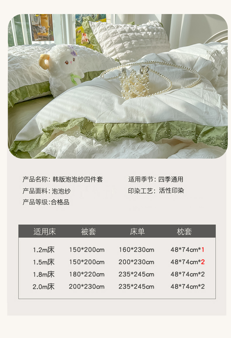 商品名称:(总)盼季2023新款奶油风公主风小清新花边泡泡纱床上四件套宿舍三件套
