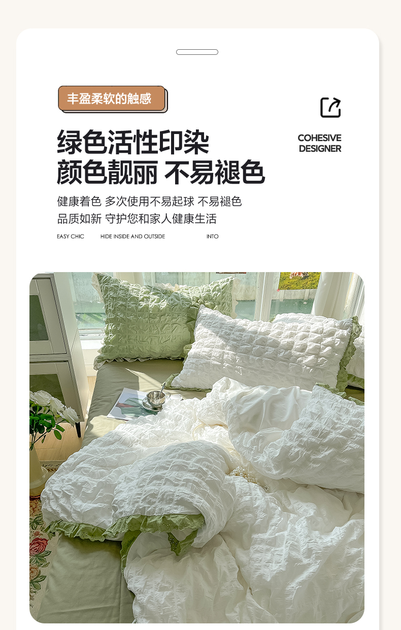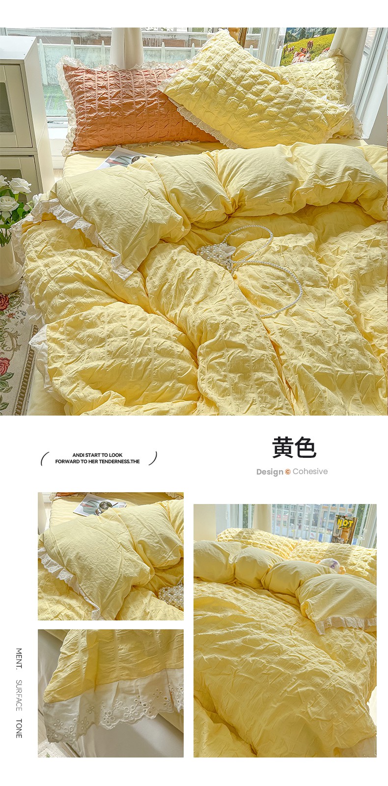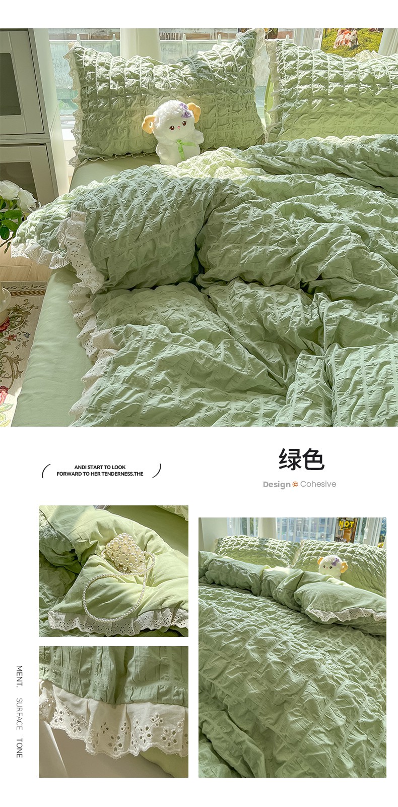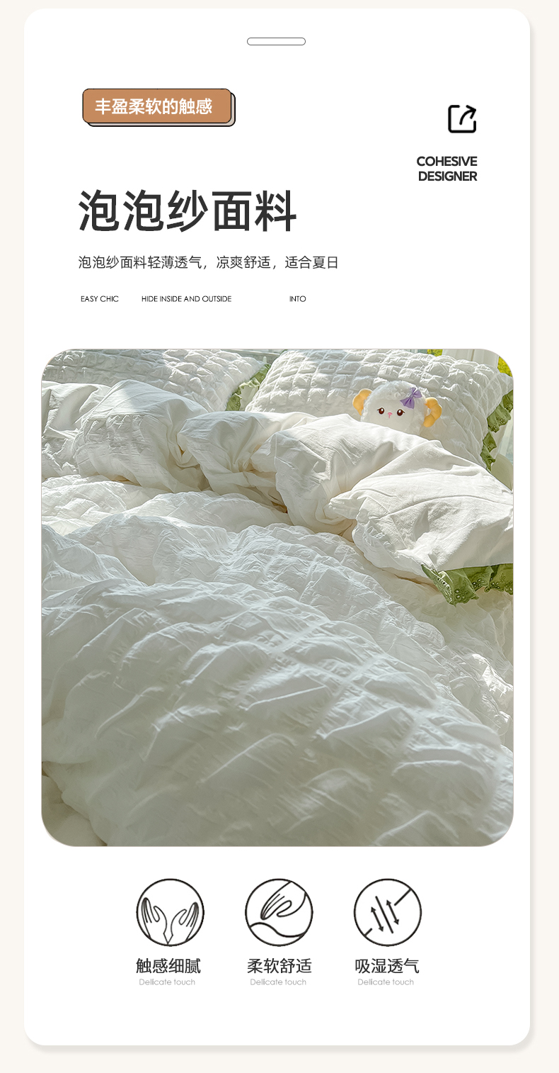 商品名称:(总)盼季2023新款奶油风公主风小清新花边泡泡纱床上四件套宿舍三件套