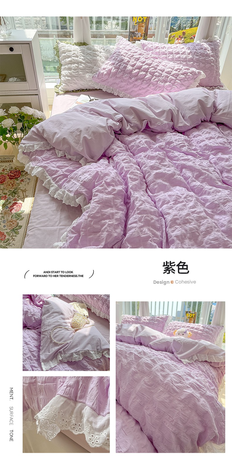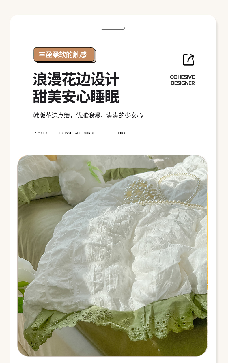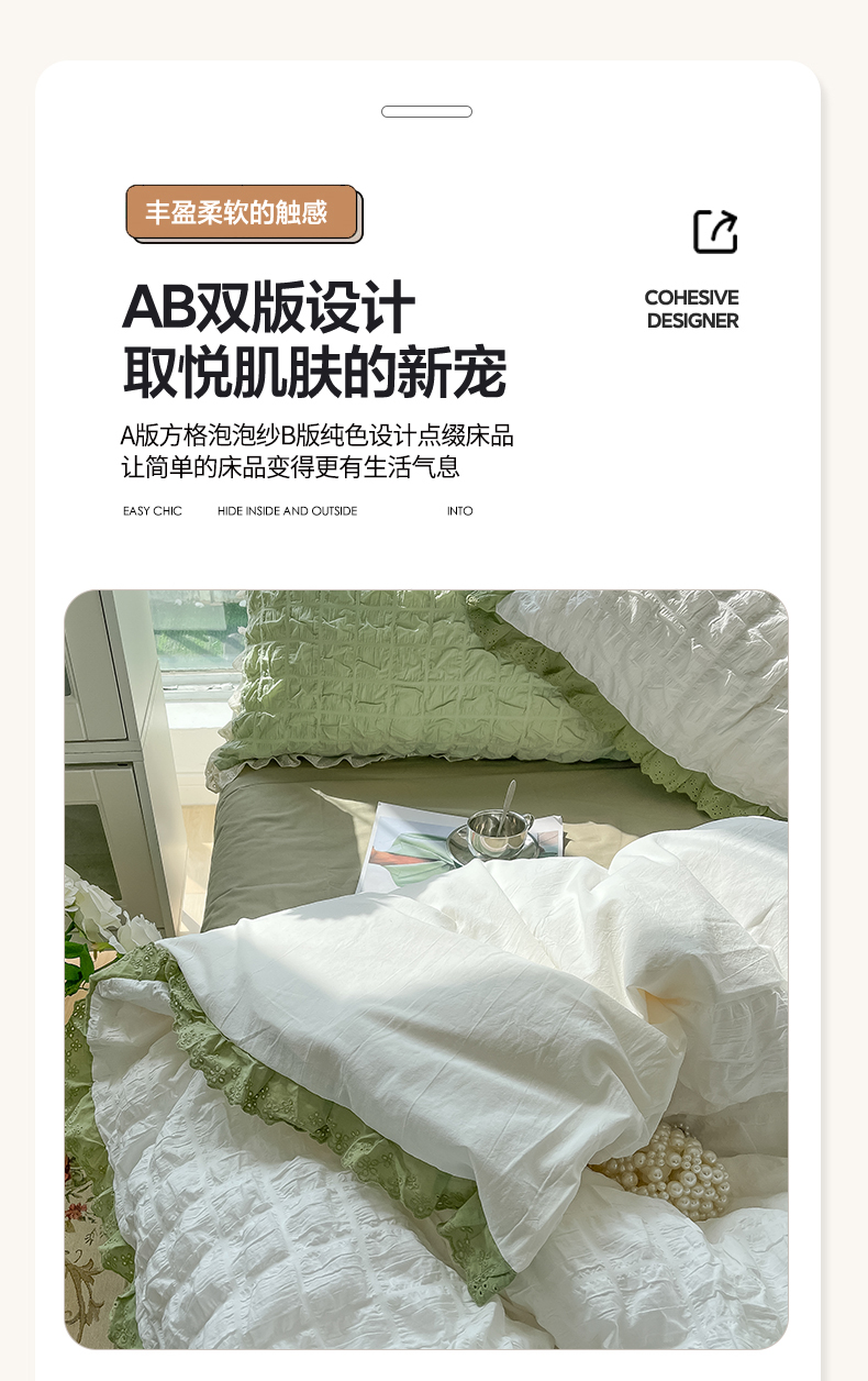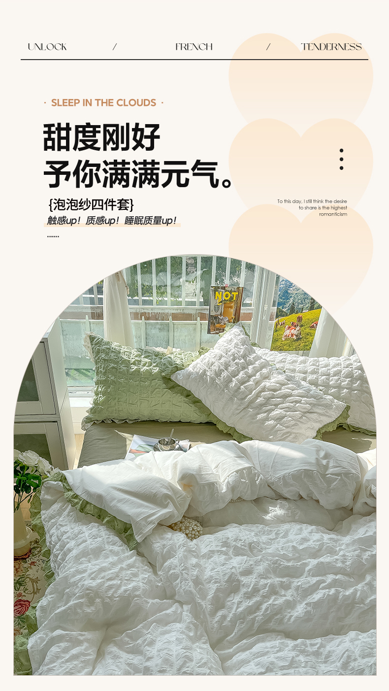 (总)盼季2023新款奶油风公主风小清新花边泡泡纱床上四件套宿舍三件套