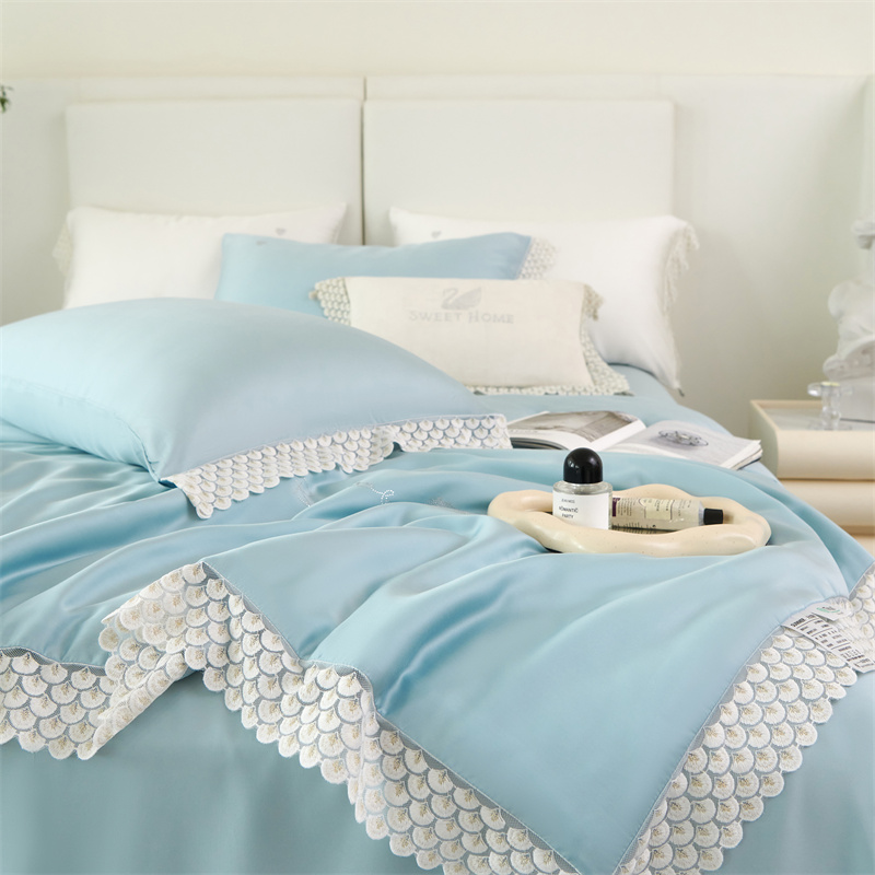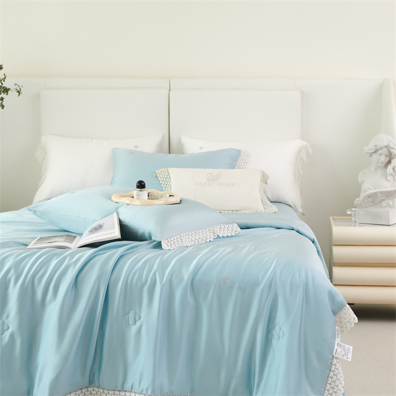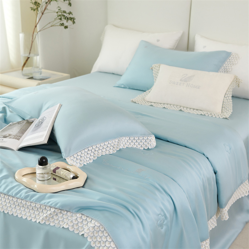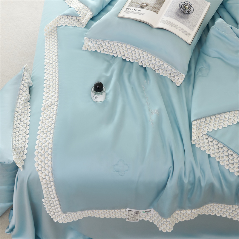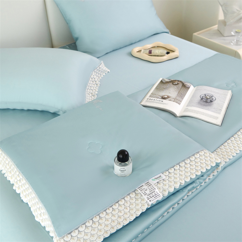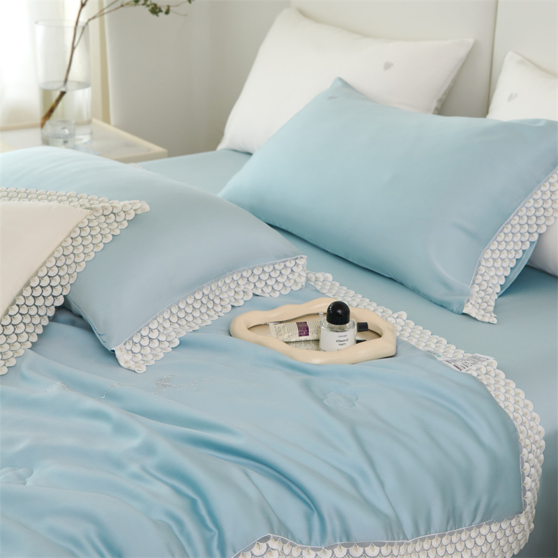 商品名称:时亿2023新款蕾丝款60支兰精天丝夏被-花海 花海 蓝