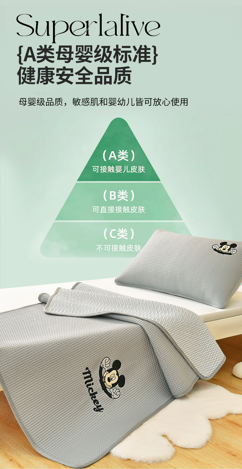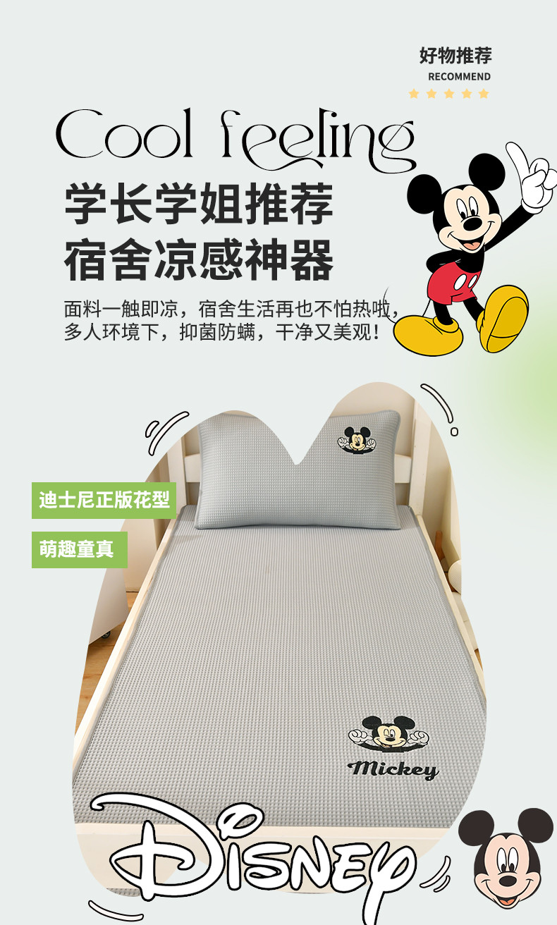 商品名称:鑫钰 2023新款中分子凉感华夫格复合学生宿舍专用上下铺凉席床席 迪士尼-快乐米奇