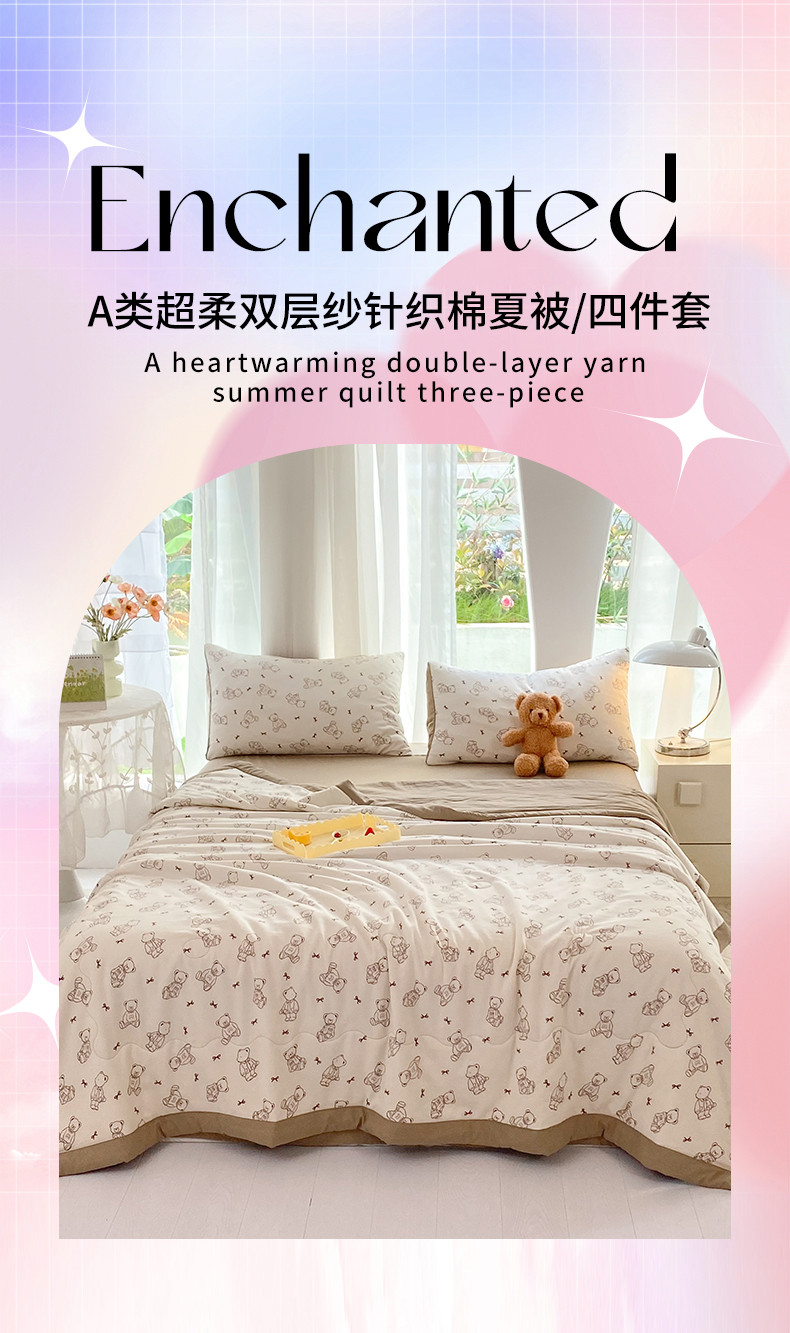 商品名称:妖妖家纺 2023新款超柔双层纱针织夏被 可爱棕熊