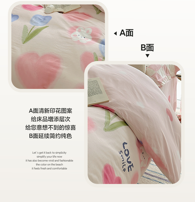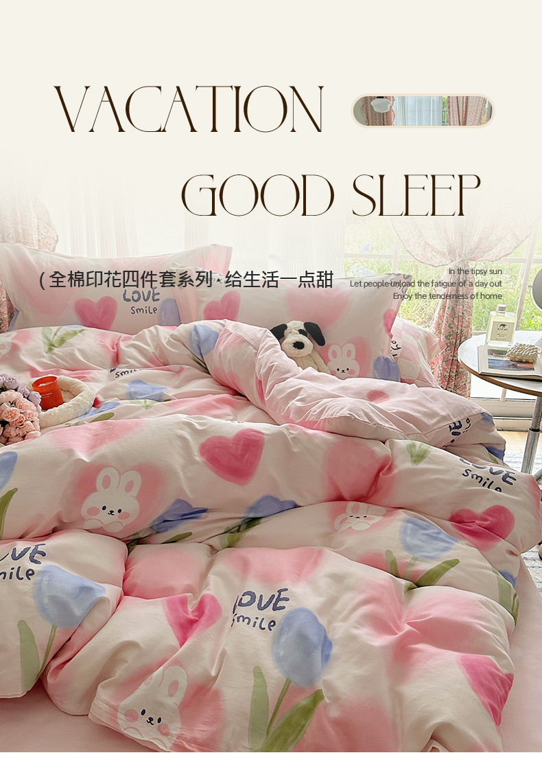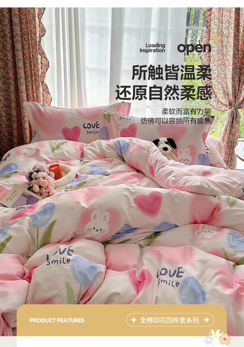 总盛馨家纺 2023新款ins北欧风高支高密全棉喷气小清新纯棉四件套,花丛兔,锦鲤,快乐小狗,梦幻,梦境小兔,入夏,若微,溪沐,叶墨新晨,樱桃兔,星球家园,草莓兔,花粉兔,花花小熊,花开富贵,花蓝兔,花胥梦粉,花韵,狂想曲蓝,萌宠乐园,蜜桃公主,莫奈花园蓝,奇妙幻想蓝,曲奇小熊,圣歌娜,诗情画意,桃桃兔,甜蜜小花,文特森 咖,小黄鸭,叶叶小花,油画草莓,丛林家园,粉色花海,可可大草莓,浪漫花朵,满庭花开,漫时光,暖阳紫,郁金香小兔