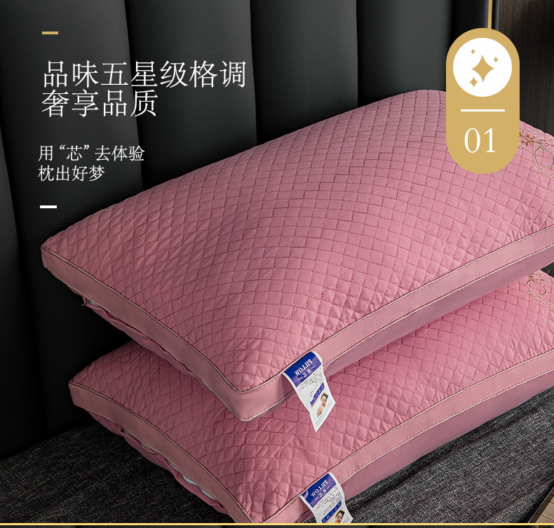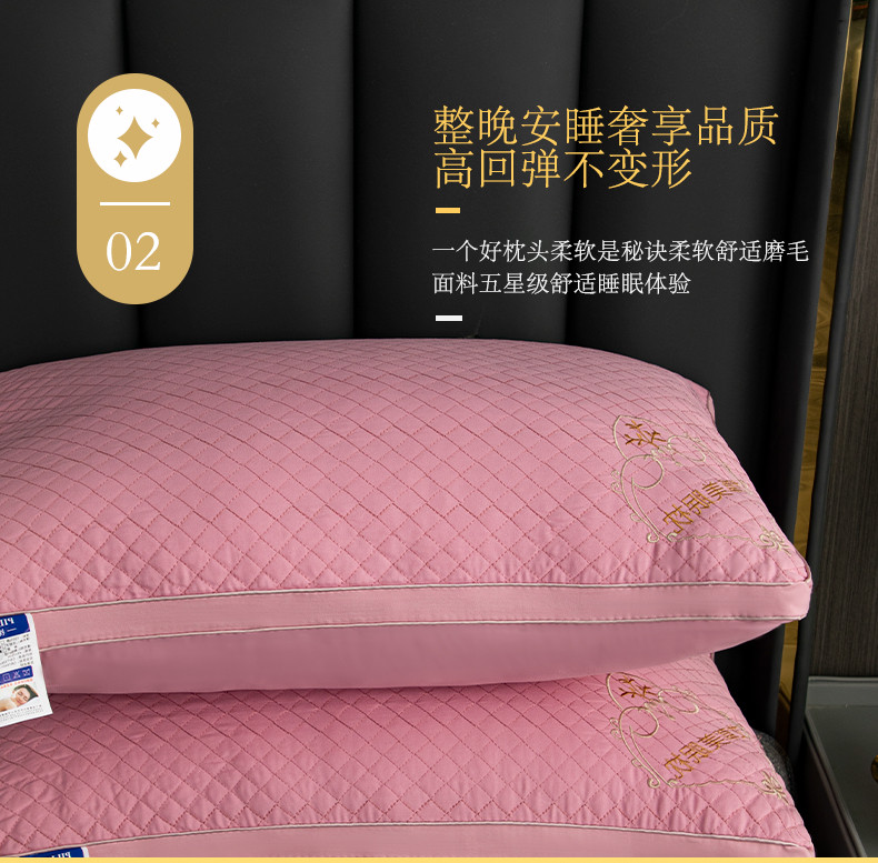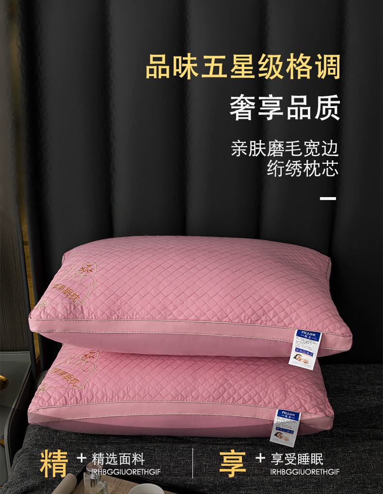 拾光枕芯 2023新款跑量高档艾草立体双边刺绣驱蚊美眠枕芯粉色
