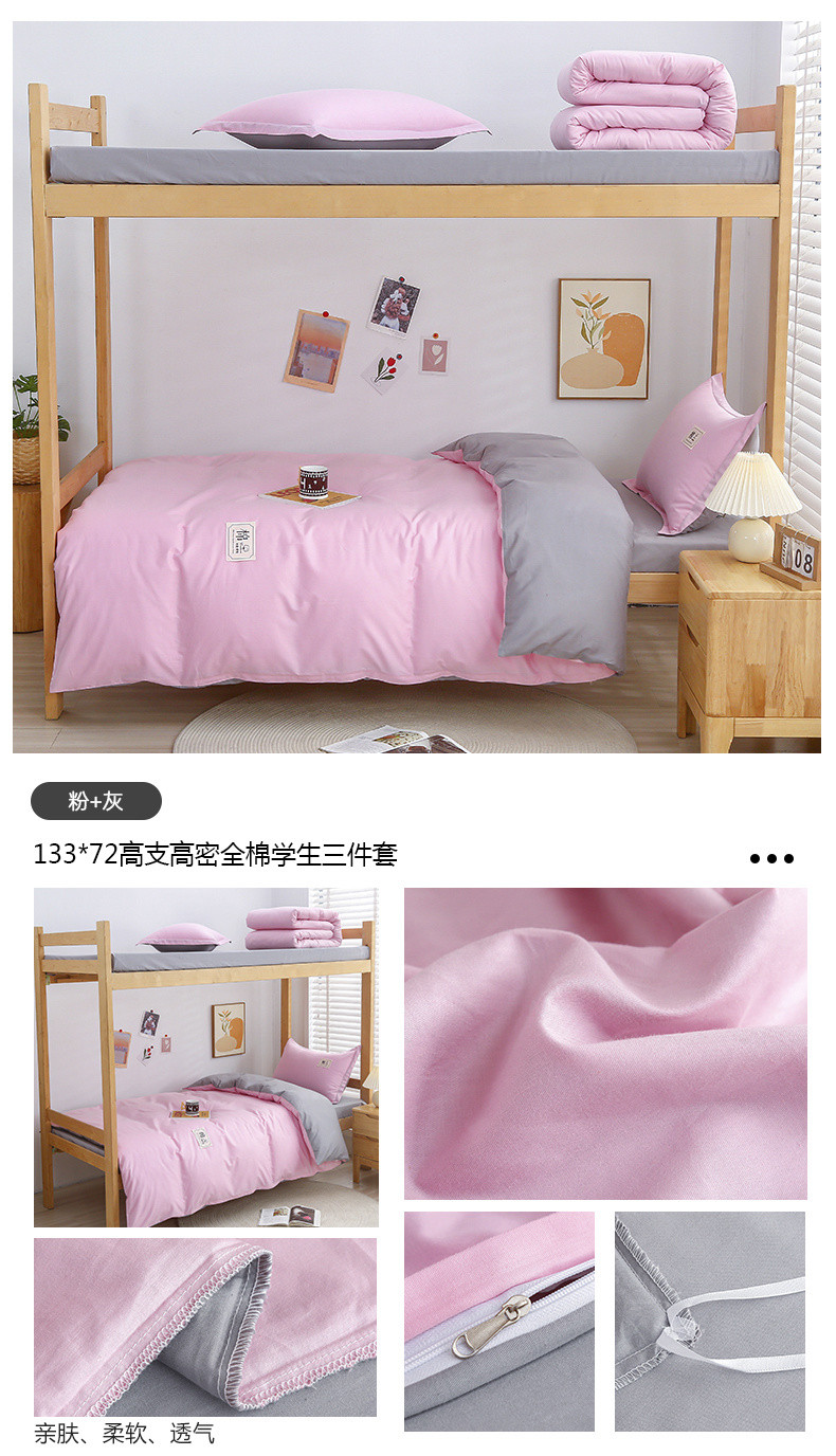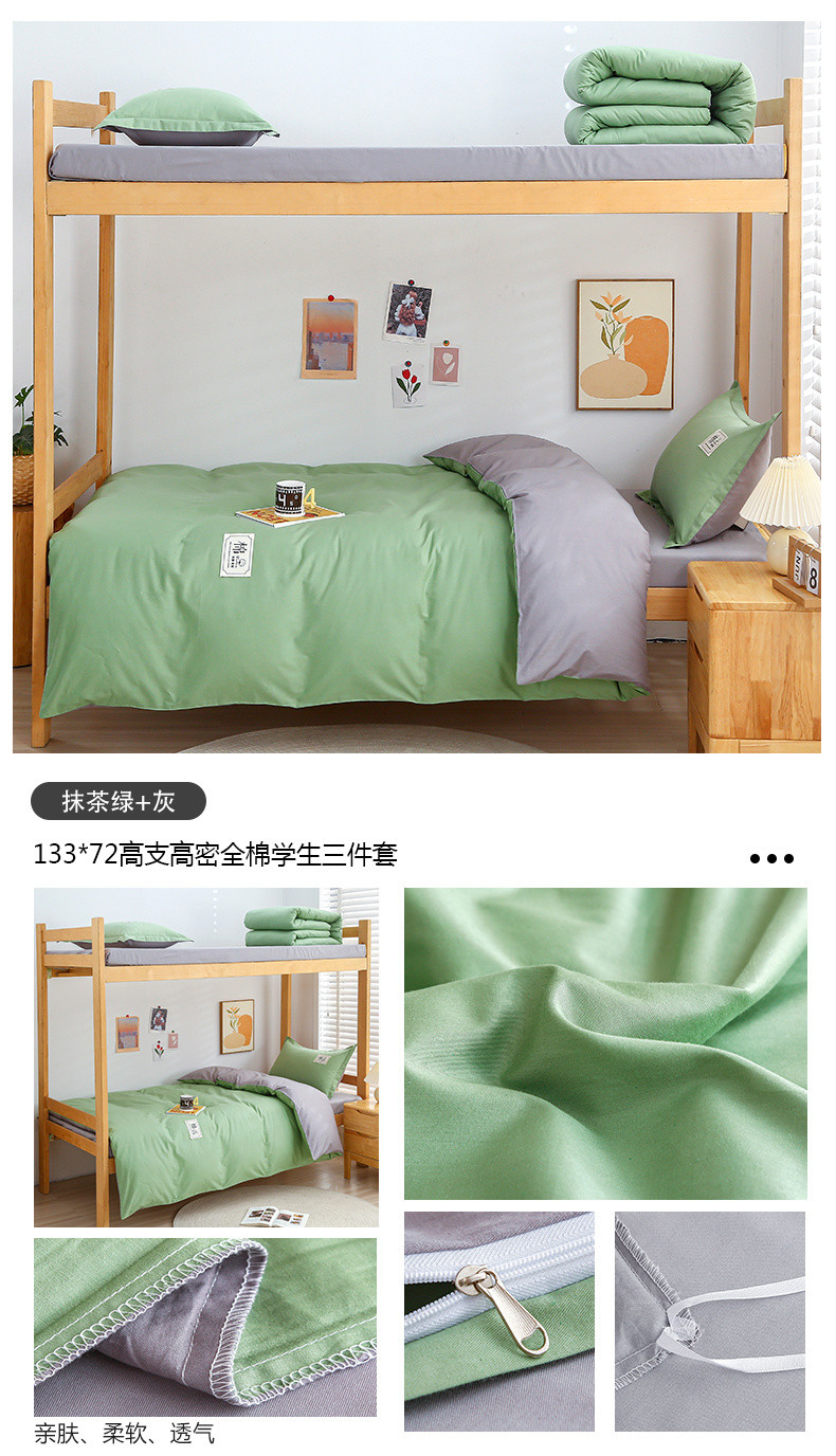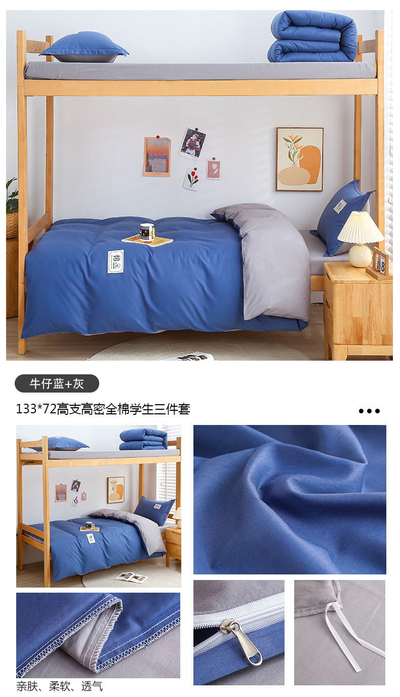 (总)乐旗 2023新款13372全棉学生三件套纯色纯棉宿舍六件套装,湖蓝+灰,深灰+浅灰,素雅绿+灰,月光蓝+卡其,白+灰,粉+灰,粉玉+卡其,抹茶绿+灰,牛仔蓝+灰,深灰+卡其,童话蓝+卡其