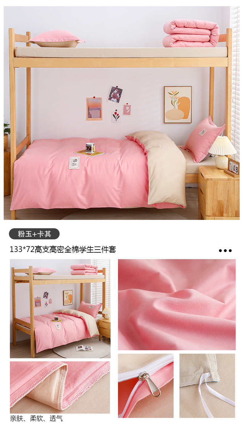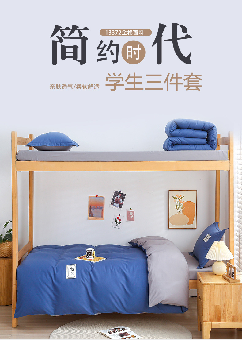 商品名称:(总)乐旗 2023新款13372全棉学生三件套纯色纯棉宿舍六件套装