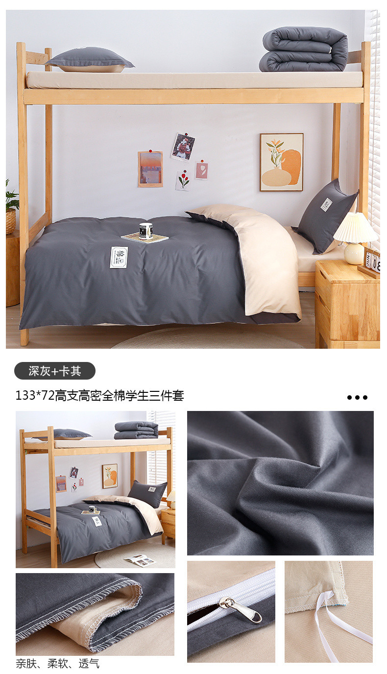 (总)乐旗 2023新款13372全棉三件套纯色纯棉宿舍六件套全套装,深灰+浅灰,湖蓝+灰,月光蓝+卡其,淡雅绿+灰,白+灰,粉+灰,粉玉+卡其,抹茶绿+灰,牛仔蓝+灰,深灰+卡其,童话篮+卡其