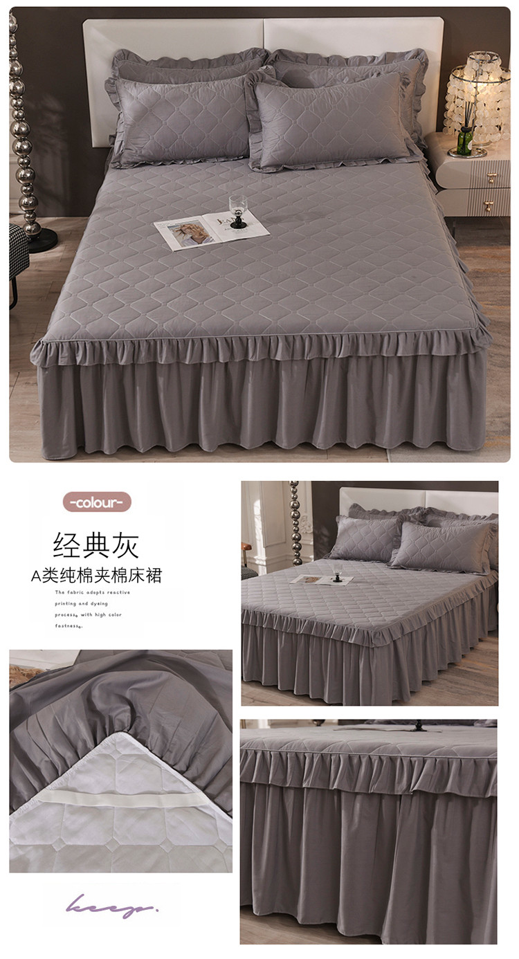 美达 2025新款A类全棉抗菌夹棉床裙 经典灰