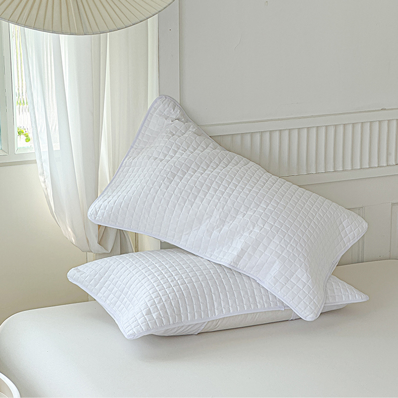 纯棉枕芯保护套酒店绗缝三层夹棉枕头隔离层家用成人透气枕头套子 白色
