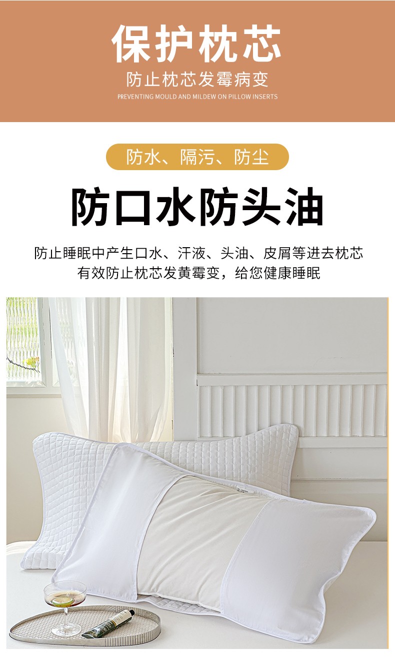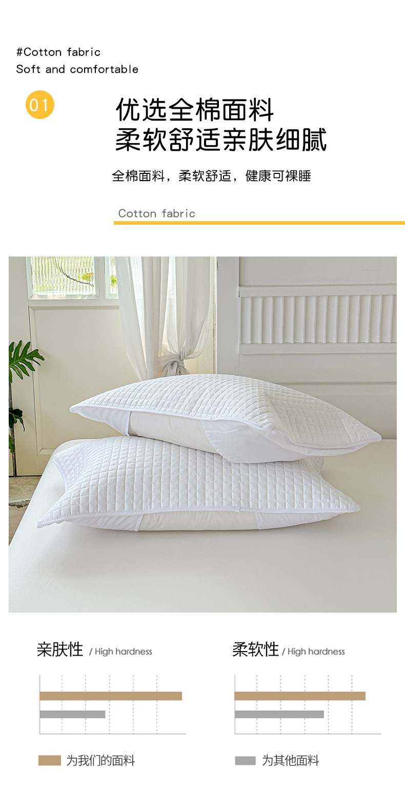 商品名称:纯棉枕芯保护套酒店绗缝三层夹棉枕头隔离层家用成人透气枕头套子 白色
