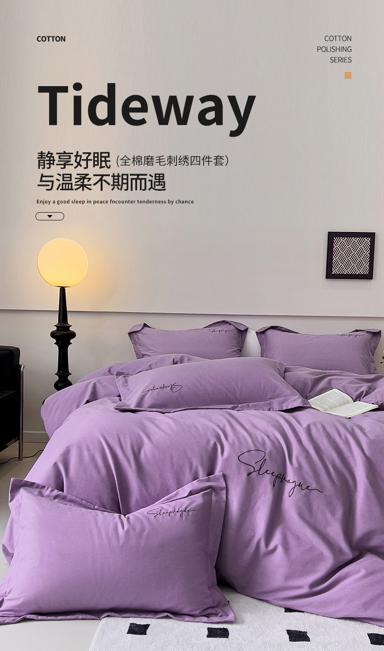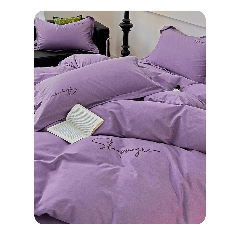 当前位置: 91家纺网 > 商品网购 > 床品套件 > 四件套 > 全棉普通四件套 > 品乐家纺 2023新款全棉磨毛英文字母绣系列四件套 艾丽紫