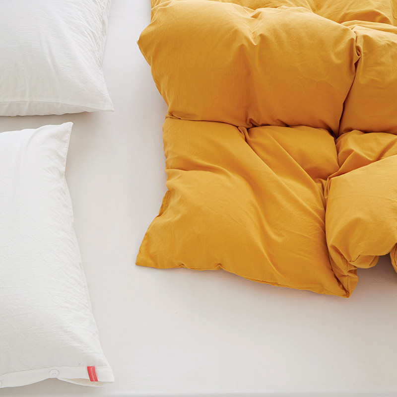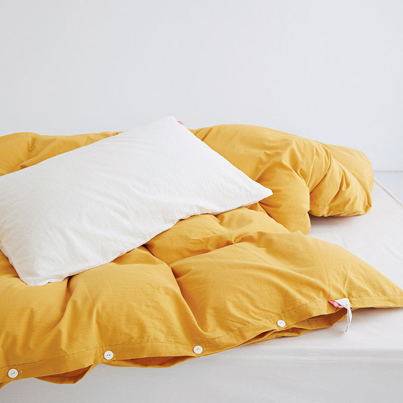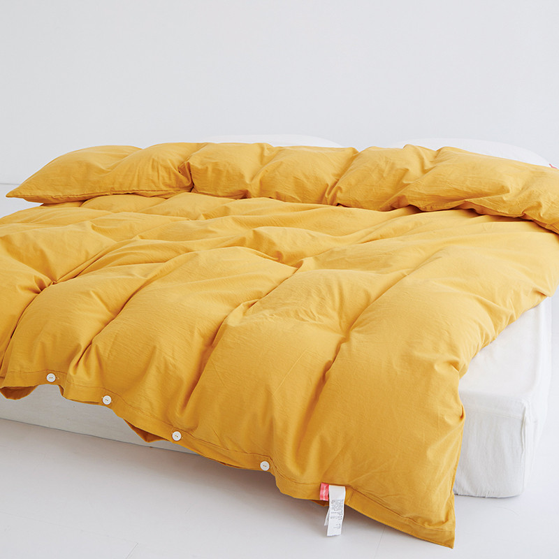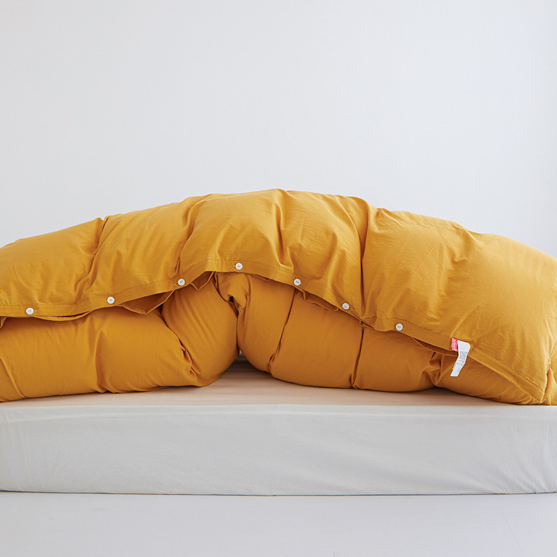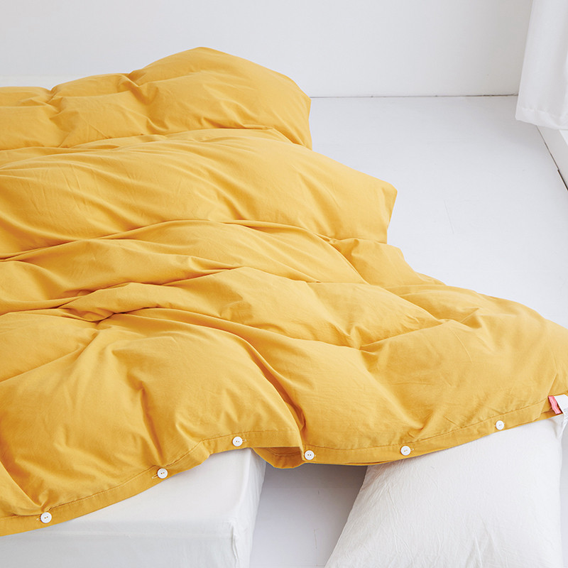 安莱生活 2023新款水洗棉全棉色织高支高密纽扣款工艺单品被套 姜黄