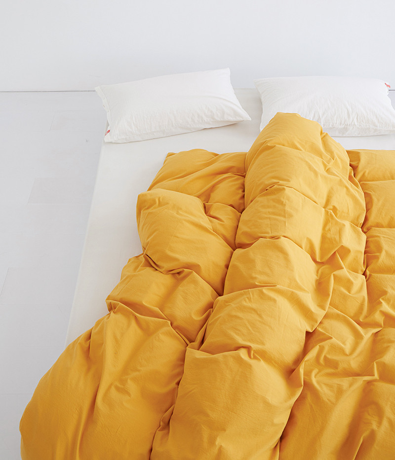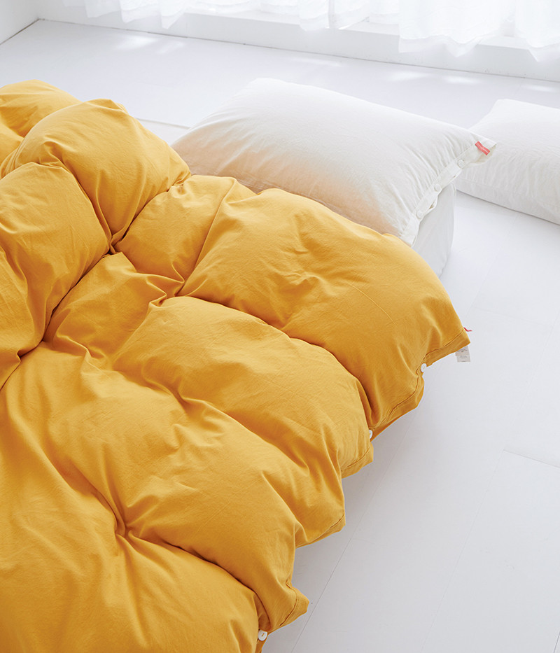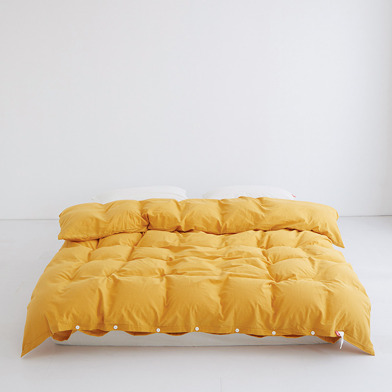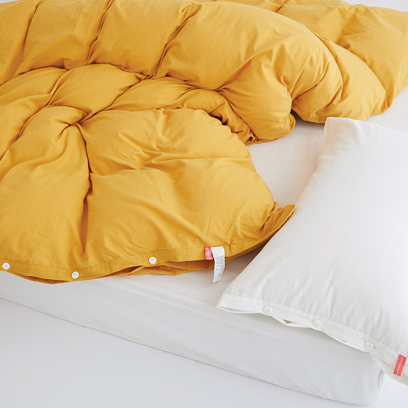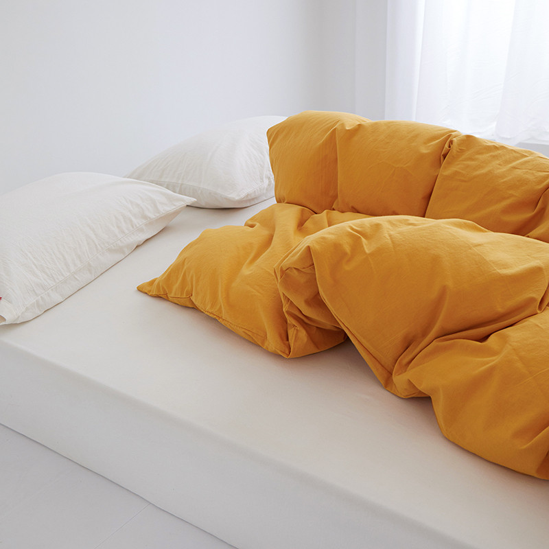 安莱生活 2023新款水洗棉全棉色织高支高密纽扣款工艺单品被套 姜黄