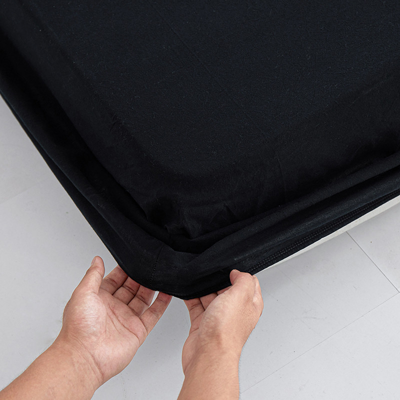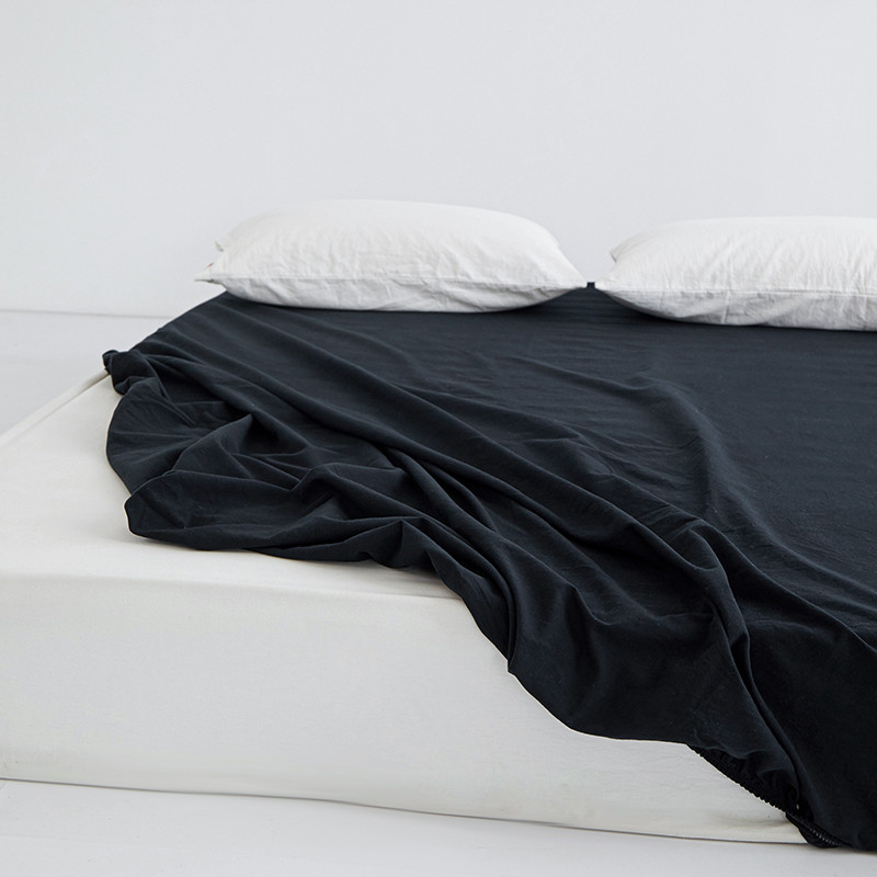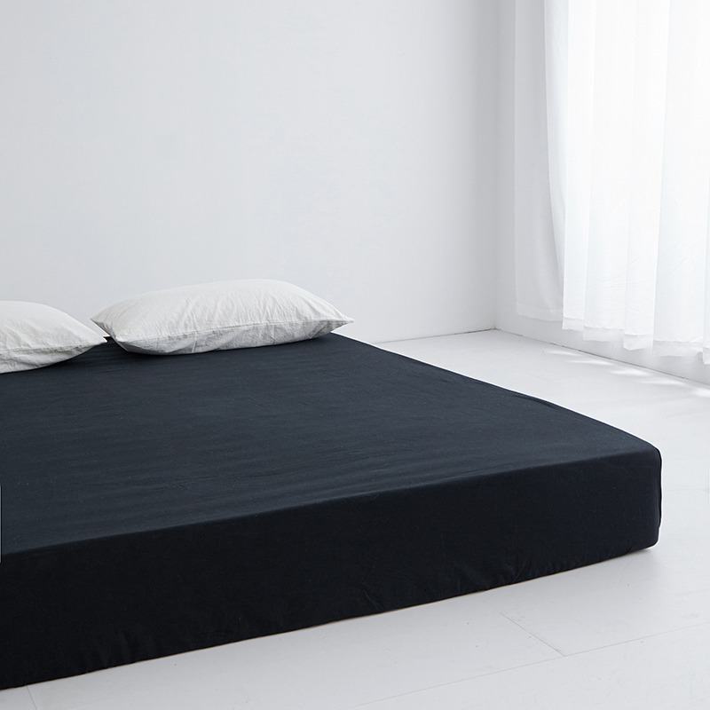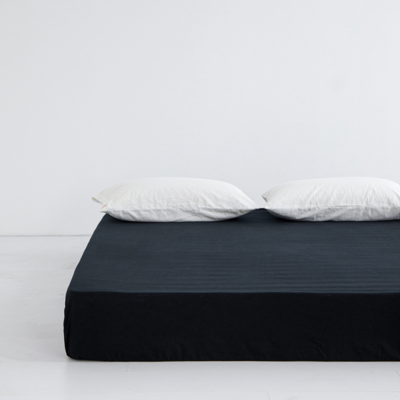 商品名称:安莱生活 2023新款水洗棉全棉色织高支高密纽扣款工艺单品床笠 炭黑