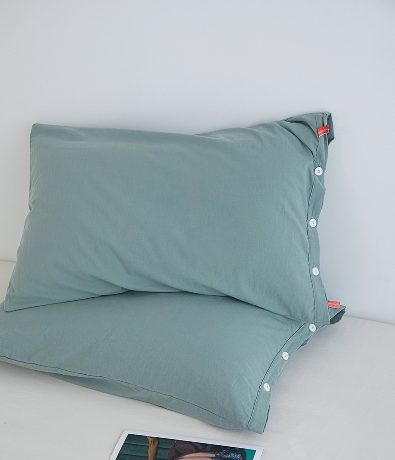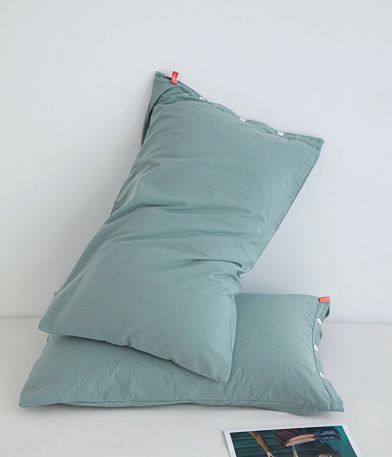 商品名称:安莱生活 2023新款水洗棉全棉色织高支高密纽扣款工艺单品枕套 灰绿