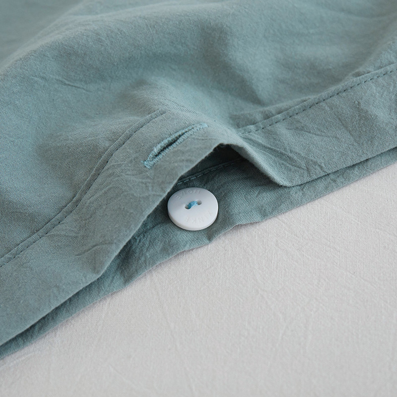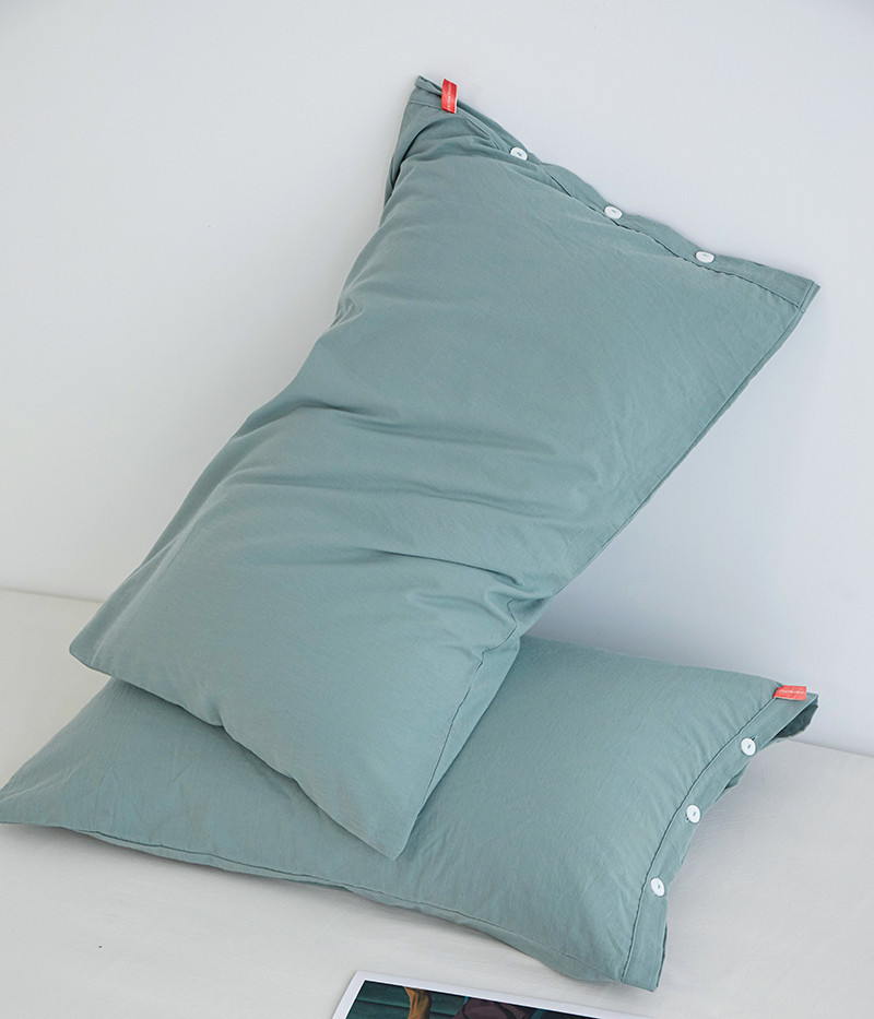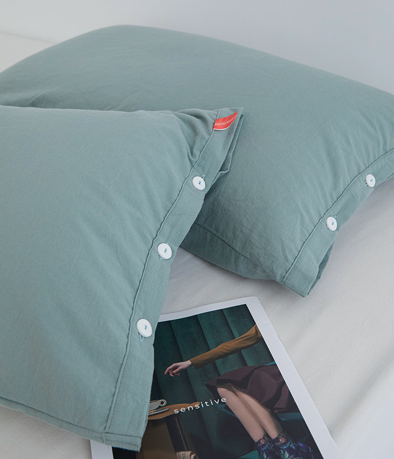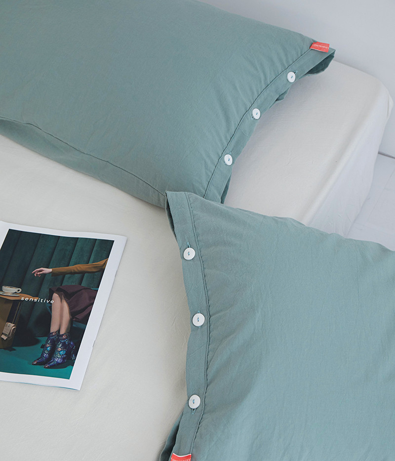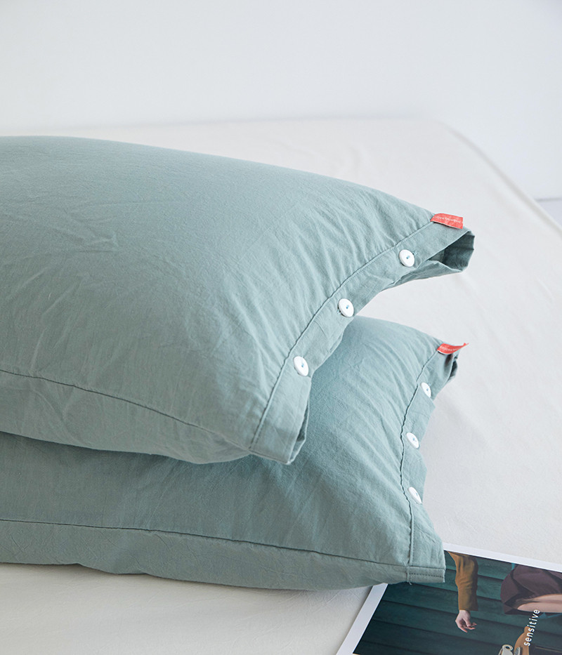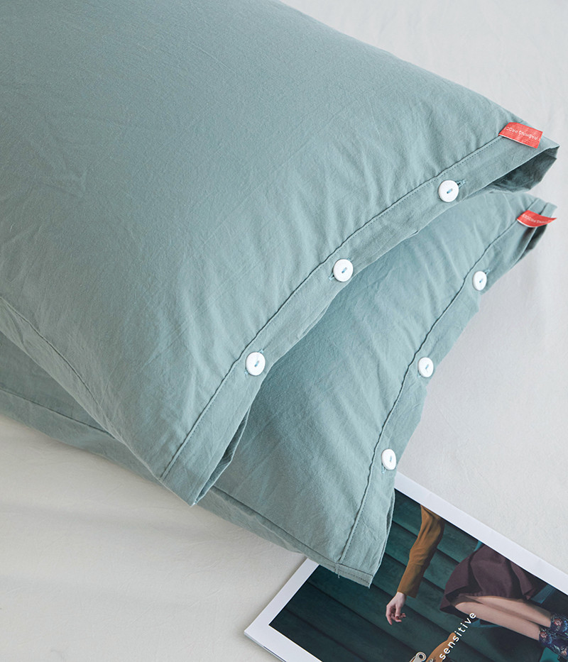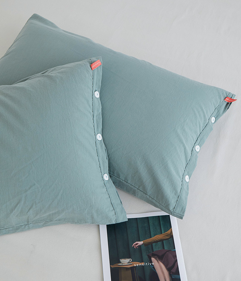 安莱生活 2023新款水洗棉全棉色织高支高密纽扣款工艺单品枕套 灰绿