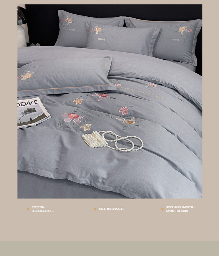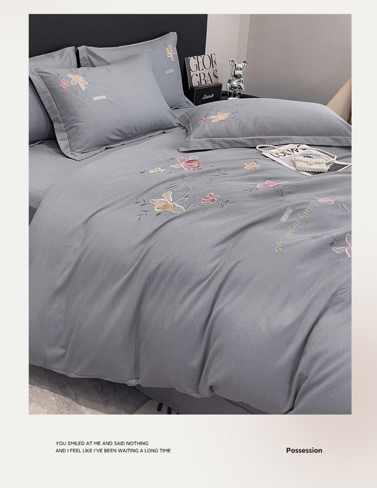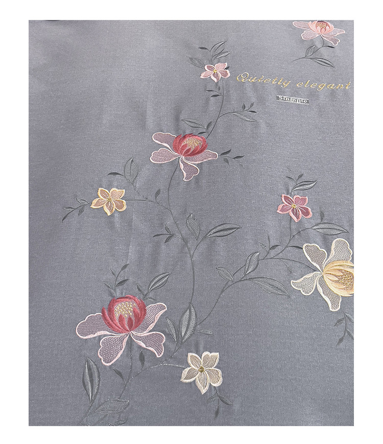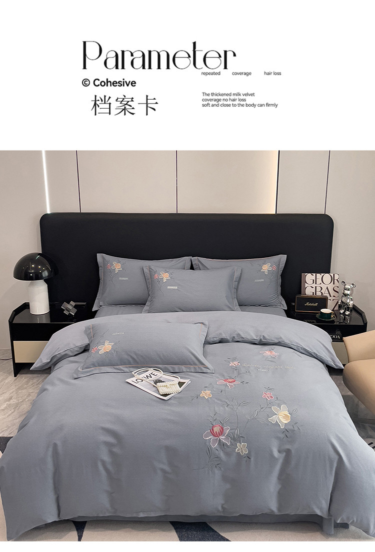 商品名称:云锦2023秋冬新品全棉磨毛绣花四件套缦芯 缦芯灰