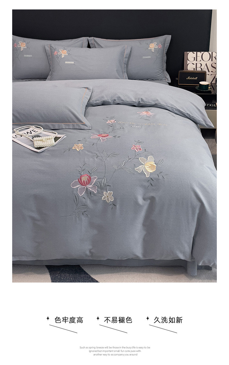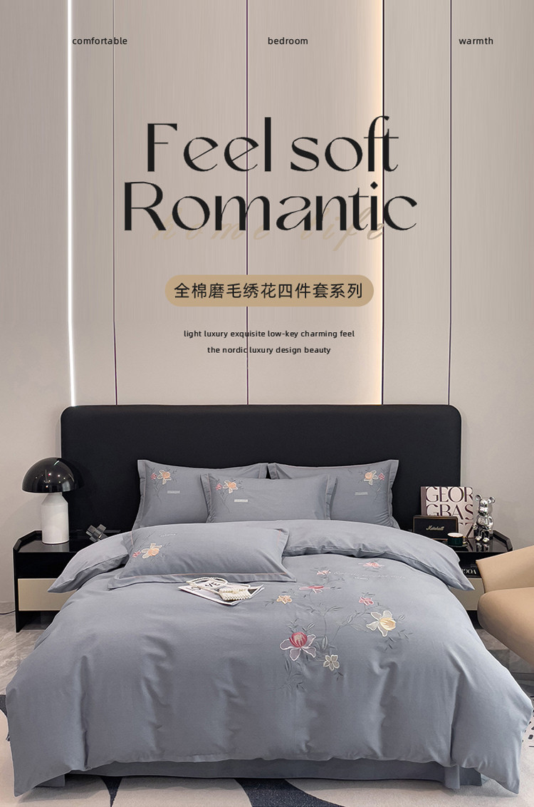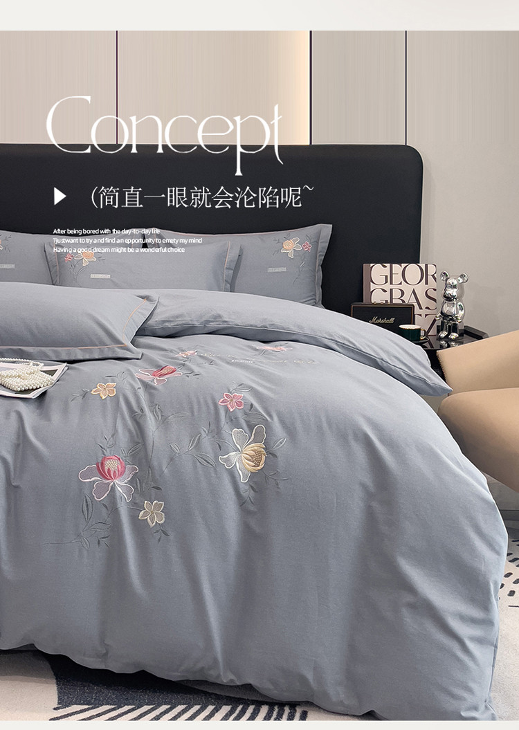 (总)云锦2023秋冬新品全棉磨毛绣花四件套缦芯,缦芯粉,缦芯灰,缦芯橘,缦芯蓝,缦芯紫
