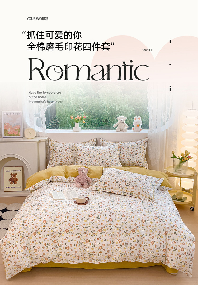 商品名称:云锦2024秋冬新品全棉磨毛印花系列四件套 朵妮