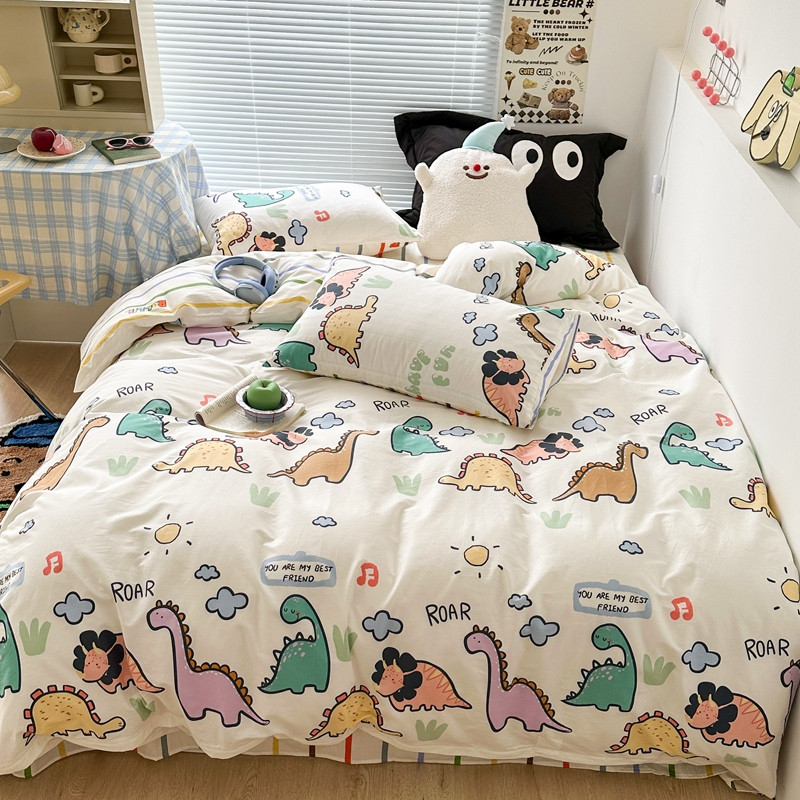 昔可 2023新款学生季卡通普通款四件套 彩条恐龙