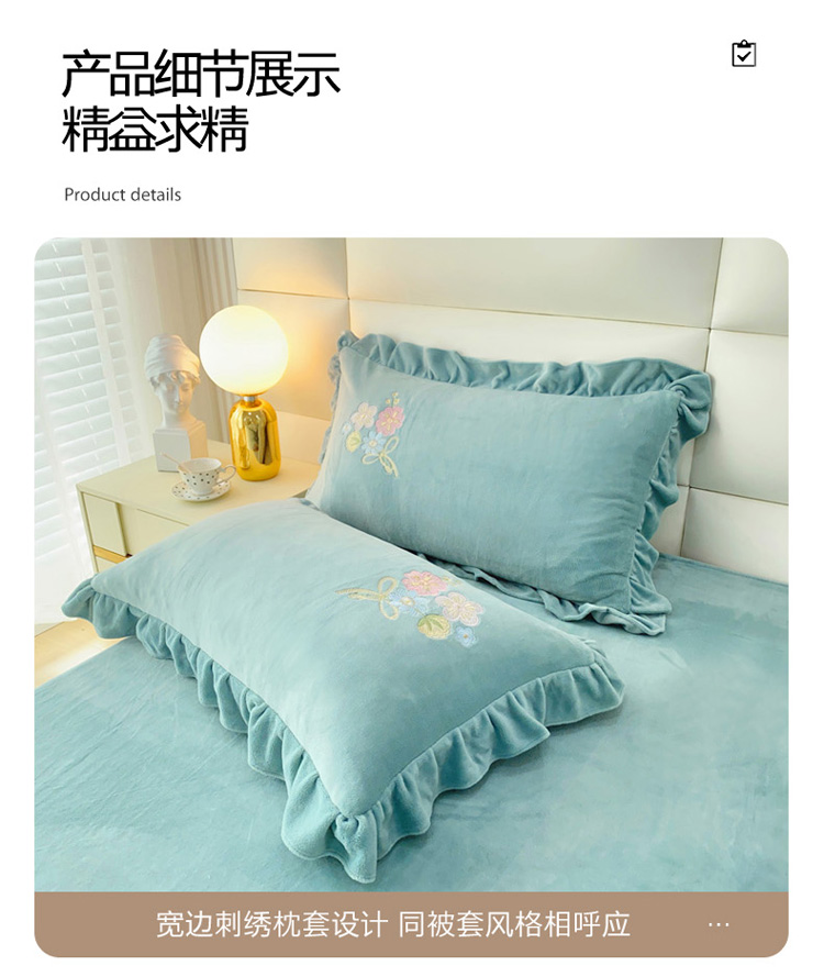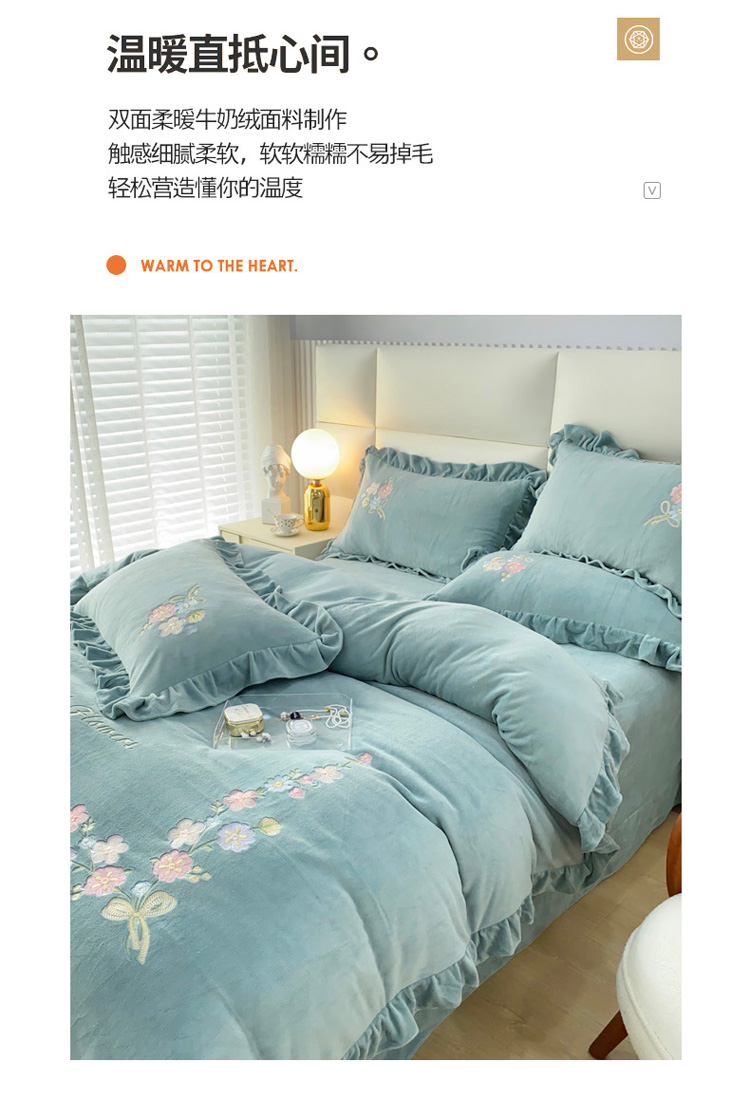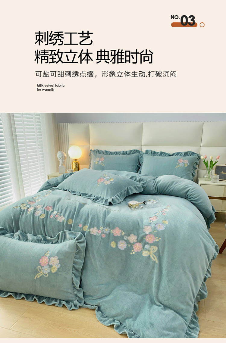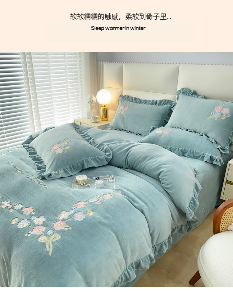 (总)星尚家纺 2024新款加厚保暖全消光牛奶绒夹棉床裙四件套-玫瑰之恋,粉玉,寐紫,浅蓝,水绿
