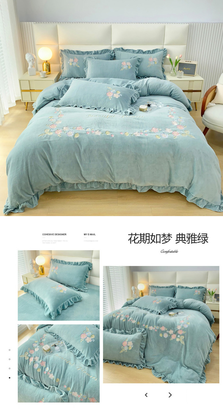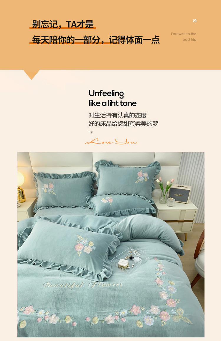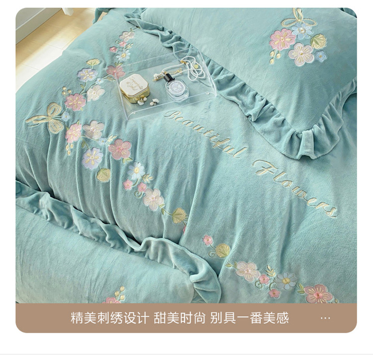 (总)星尚家纺 2024新款全消光A类230g牛奶绒韩版绣花绒四件套-绚丽花语,豆沙粉,浪漫紫,雾霾蓝,樱花粉,晨雾绿
