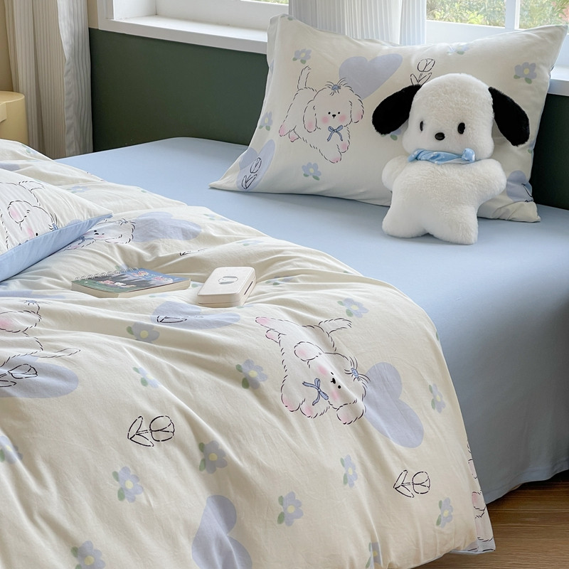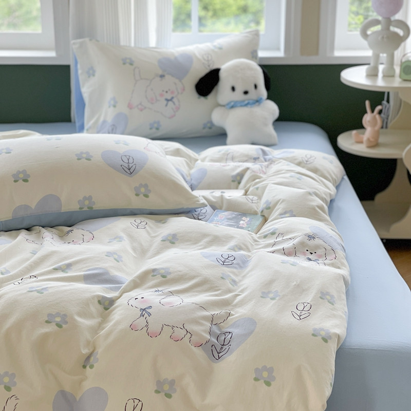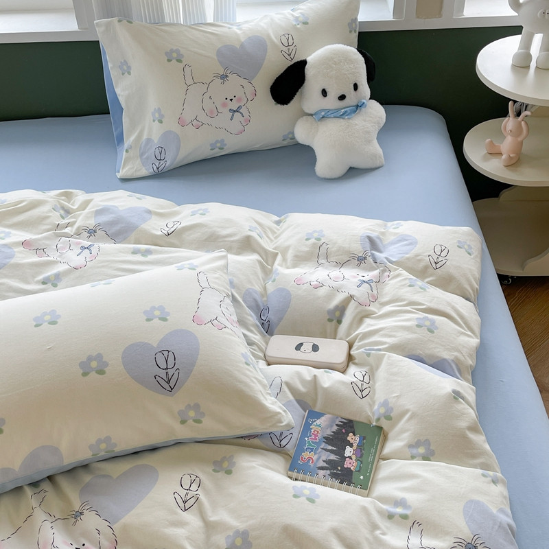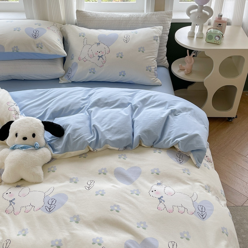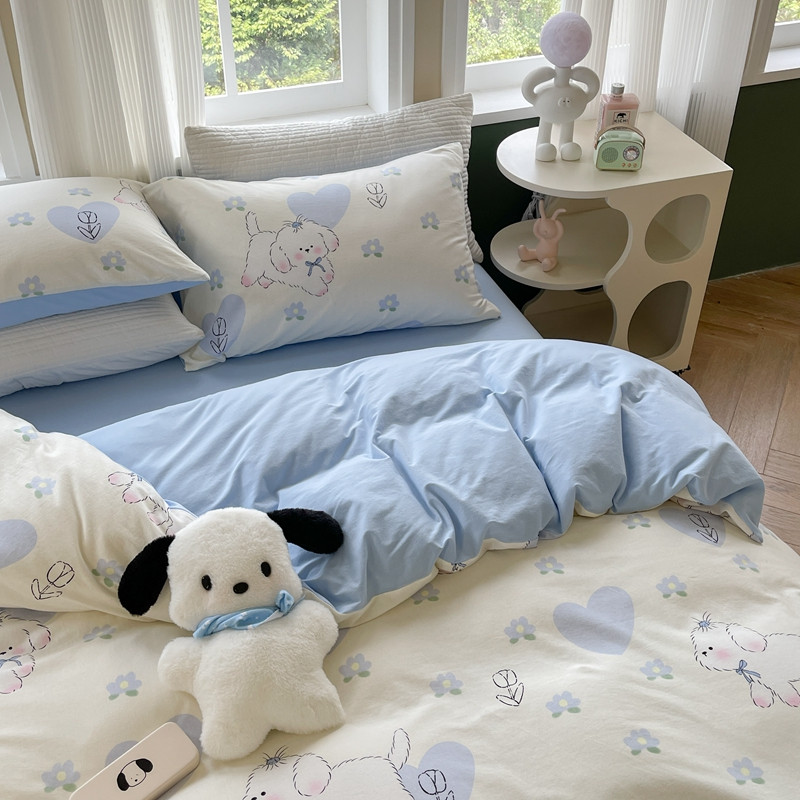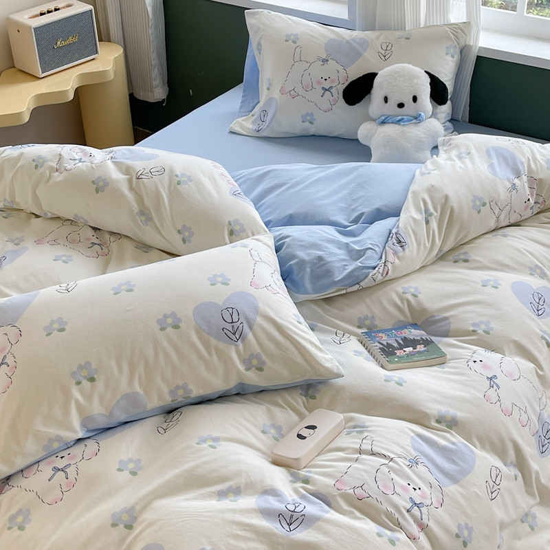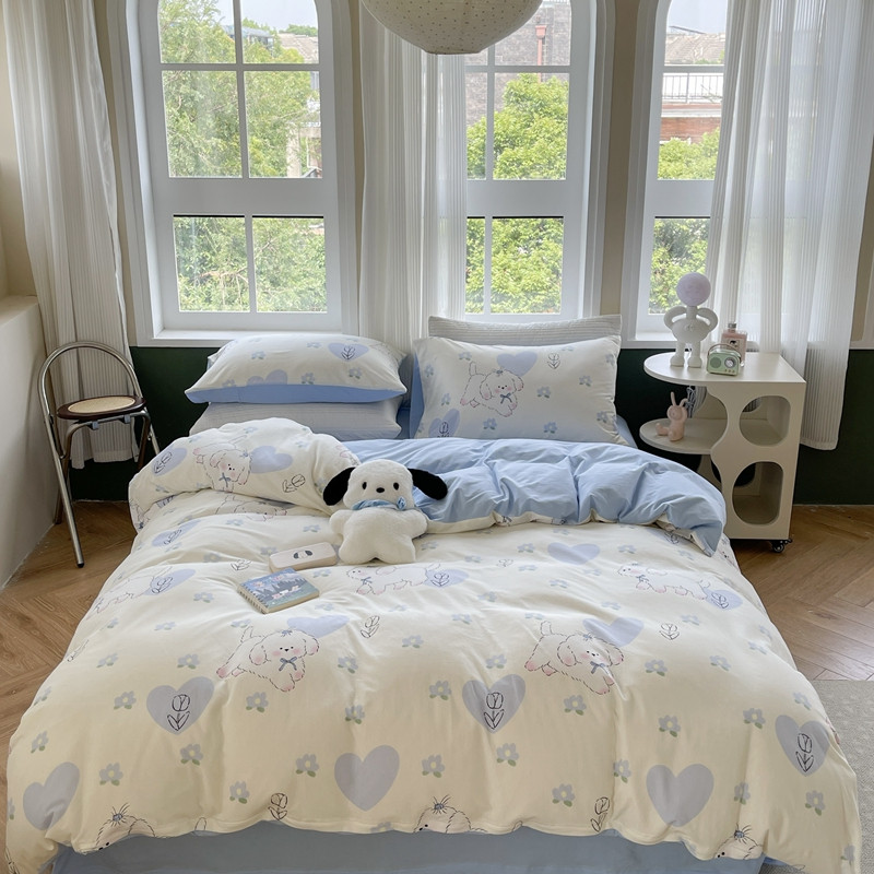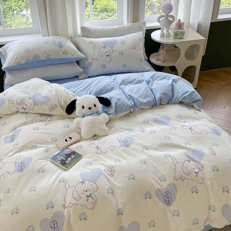 商品名称:柚子 2023新款全棉针织印花四件套 爱心狗狗