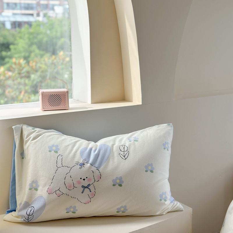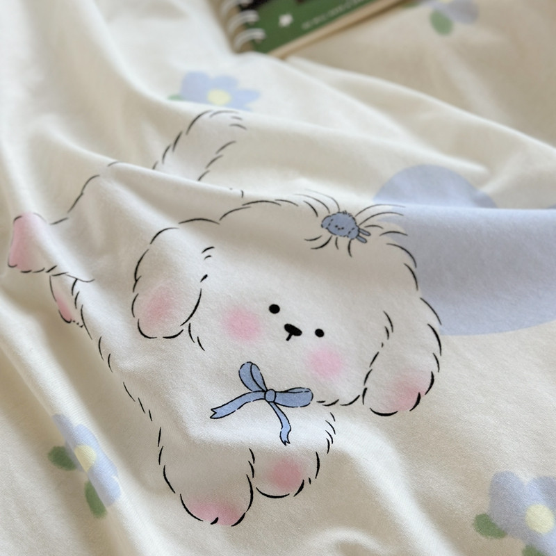 柚子 2023新款全棉针织印花四件套 爱心狗狗
