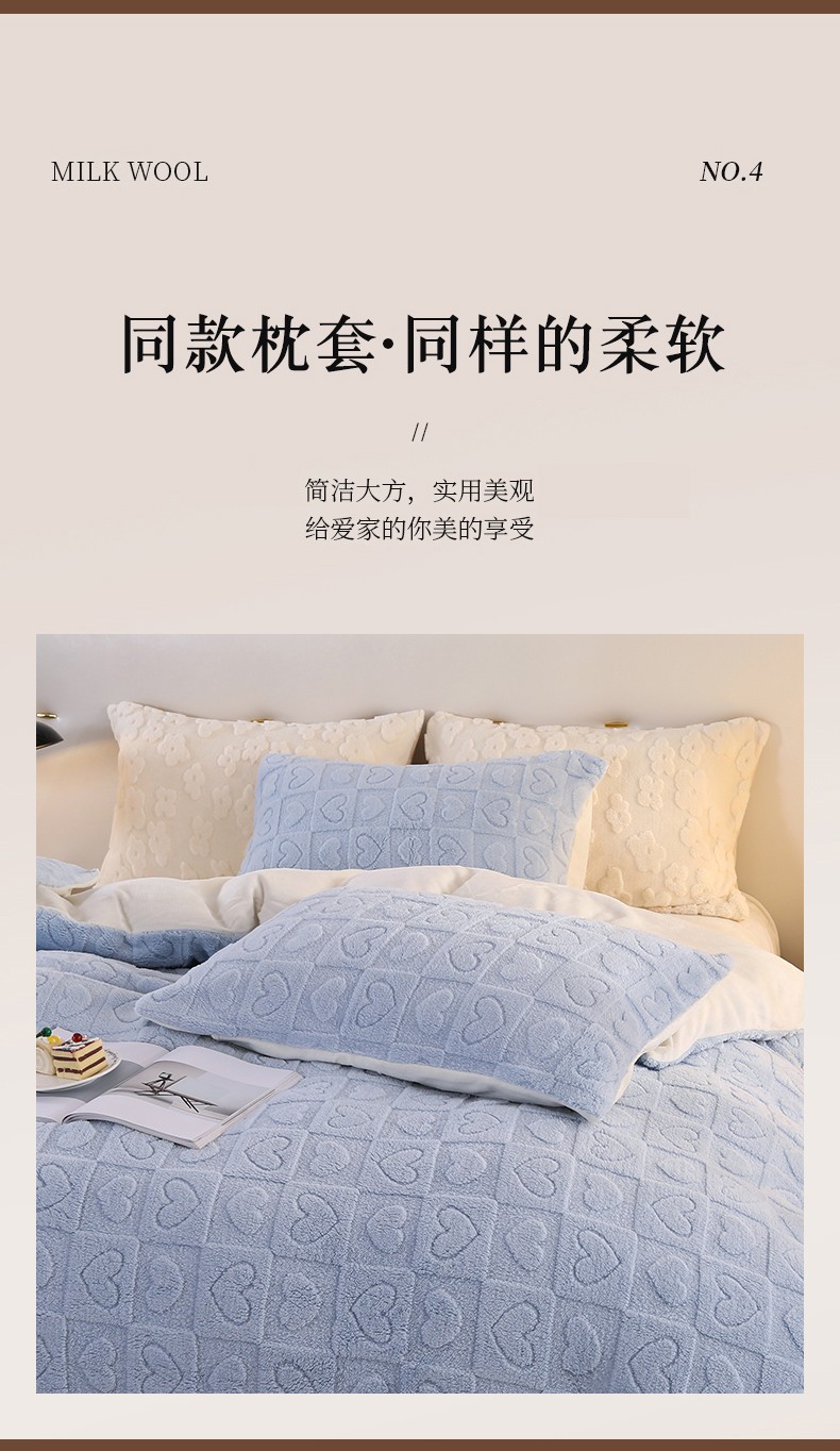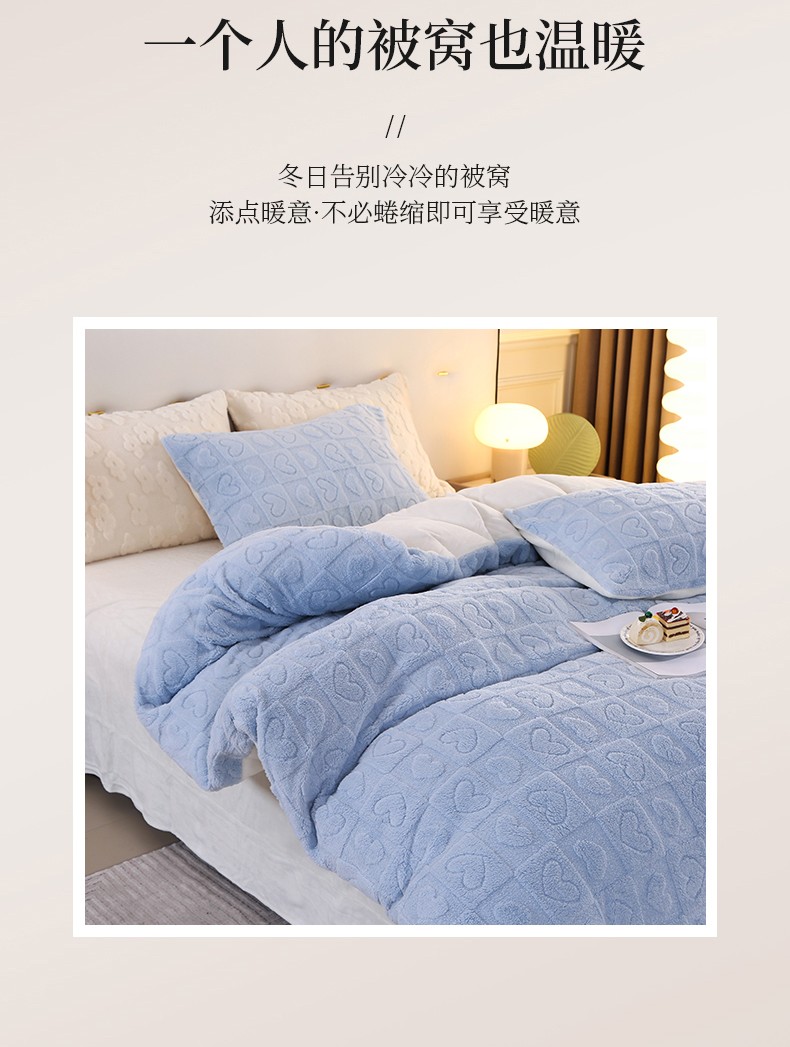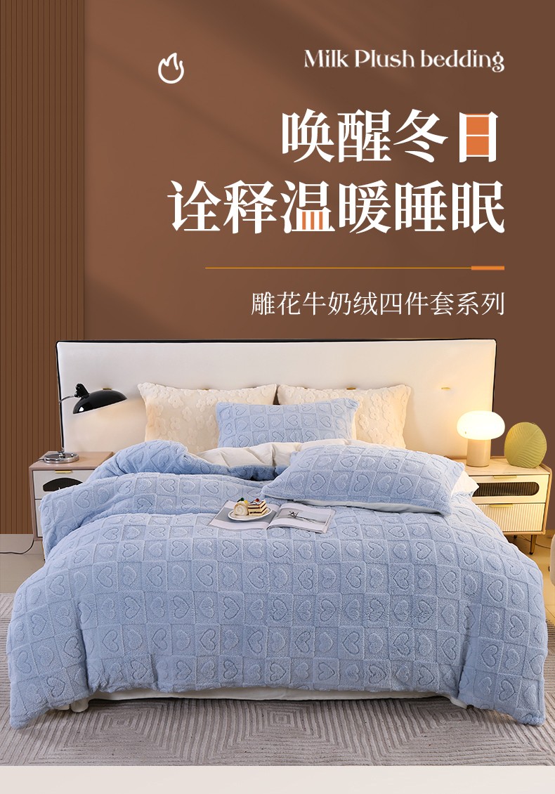 商品名称:富之航 2023新款雕花绒牛奶绒四件套 情调-湖蓝