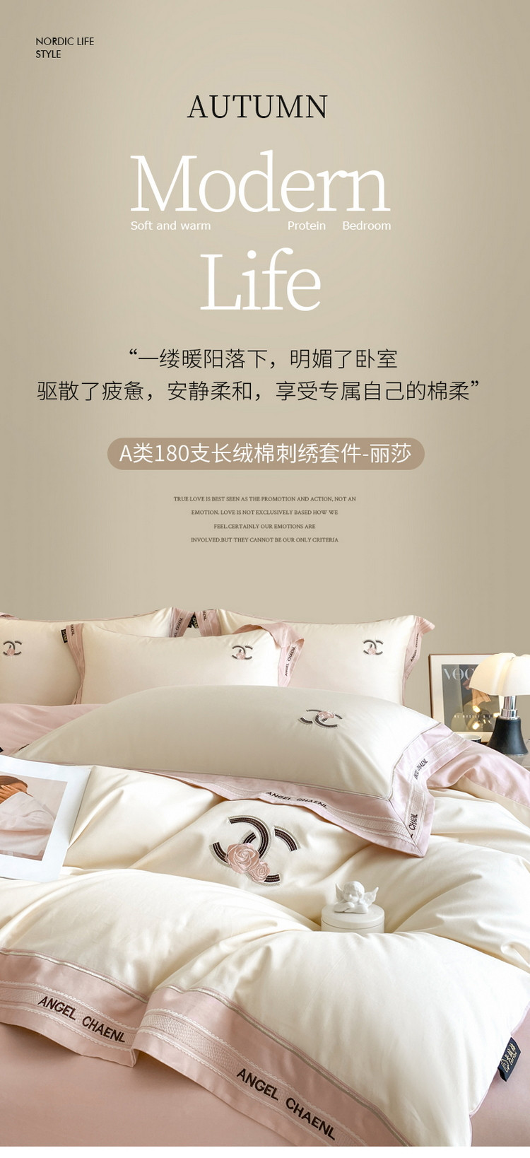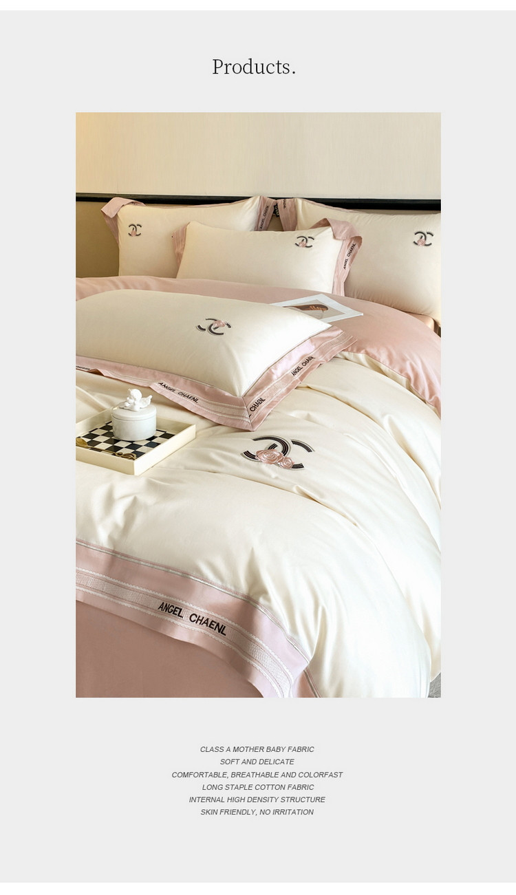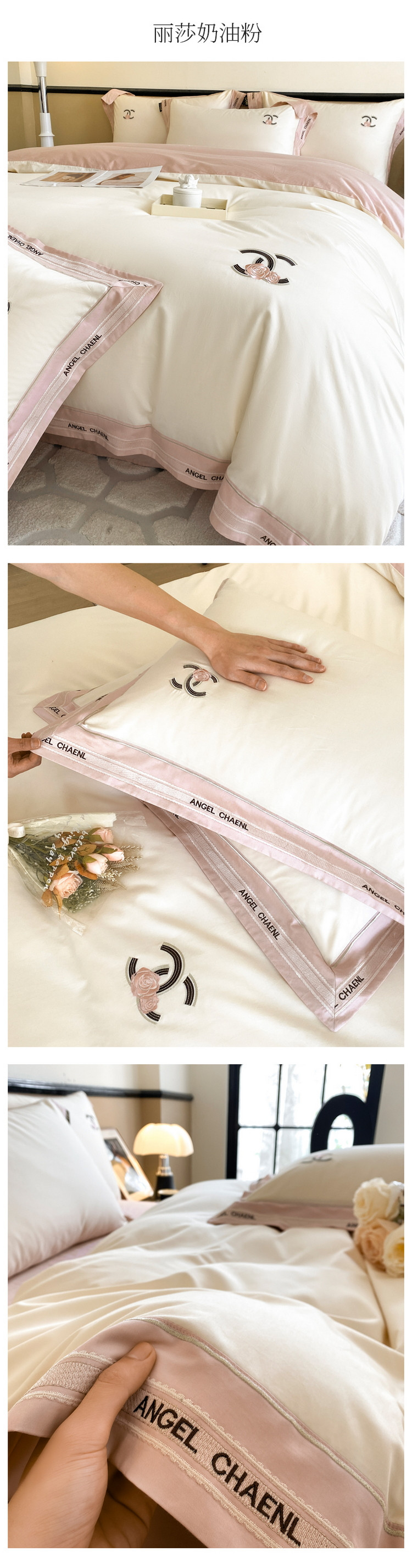当前位置: 91家纺网 > 商品网购 > 床品套件 > 四件套 > 长绒棉四件套 > 618家纺 2023新款100支长绒棉轻奢刺绣四件套-丽莎系列 奶油粉