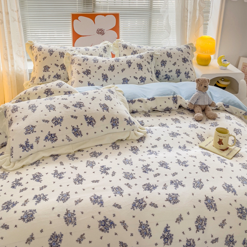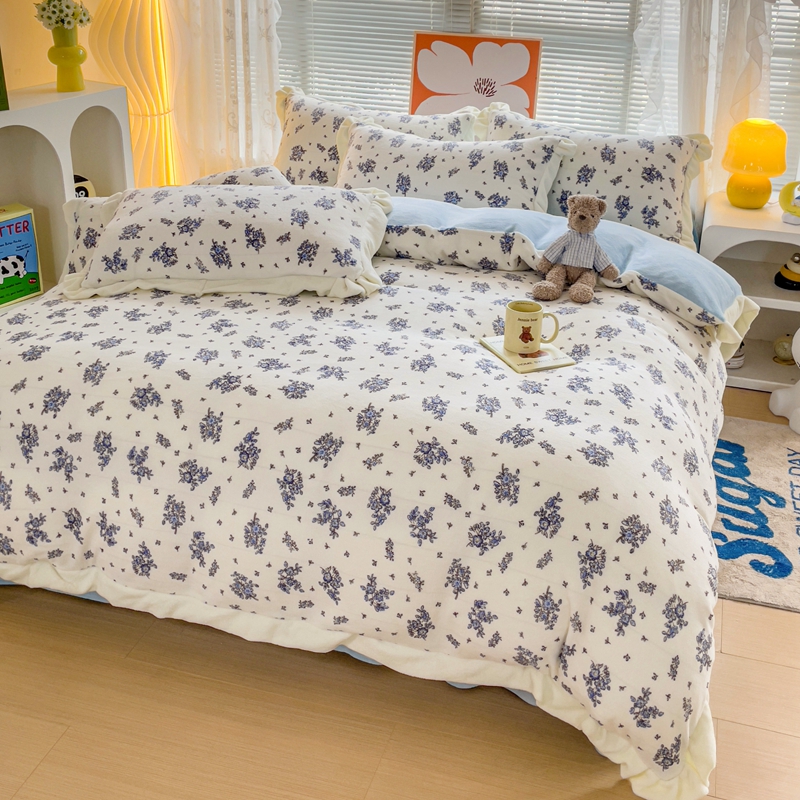 商品名称:麦朵家居 2023新款双层花边小碎花牛奶绒四件套 兰花朵朵