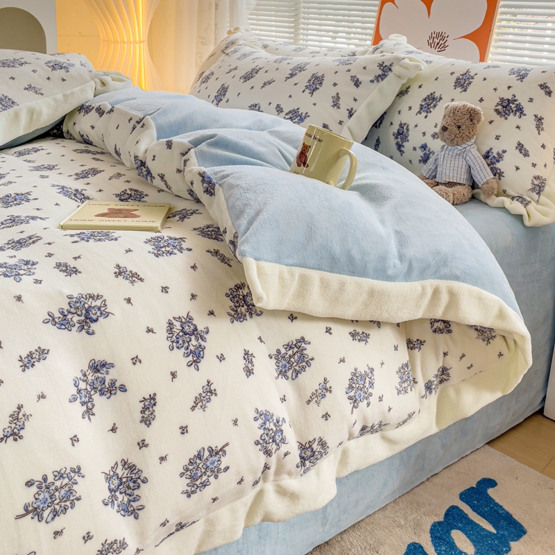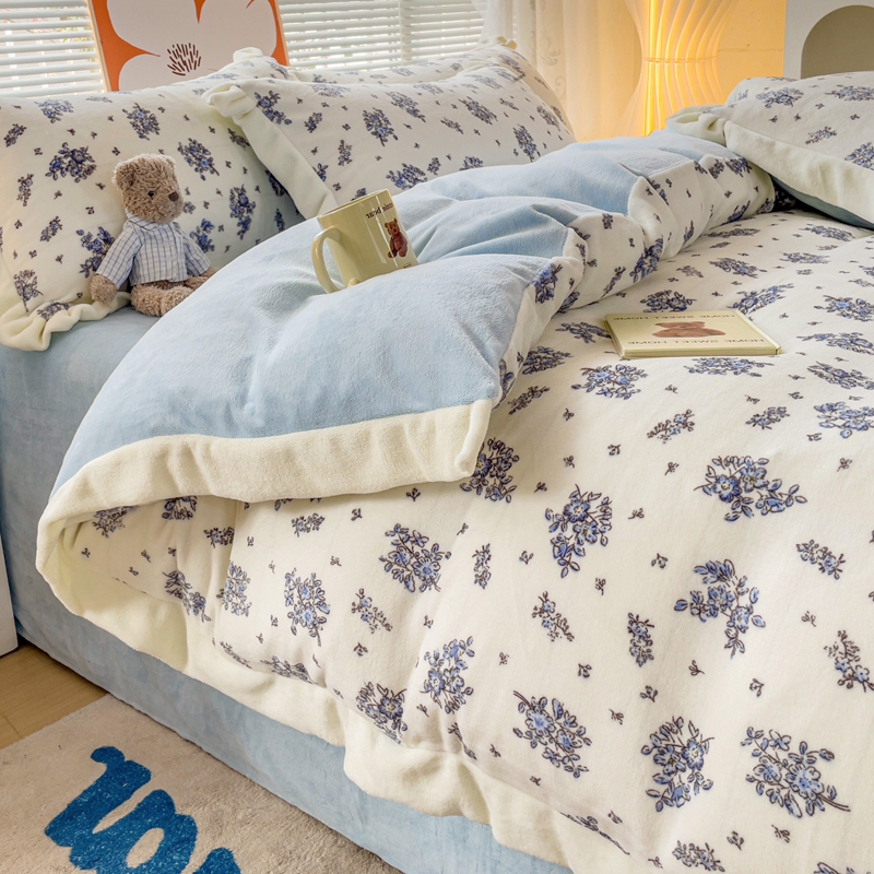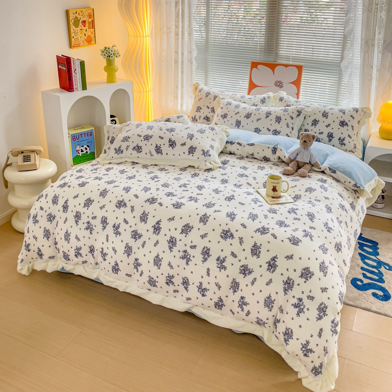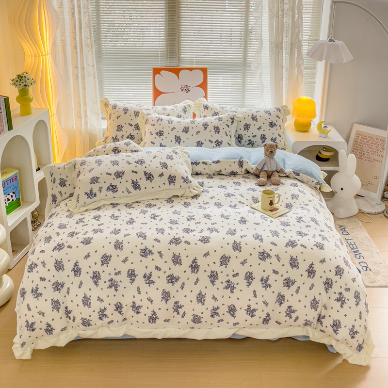 麦朵家居 2023新款双层花边小碎花牛奶绒四件套 兰花朵朵