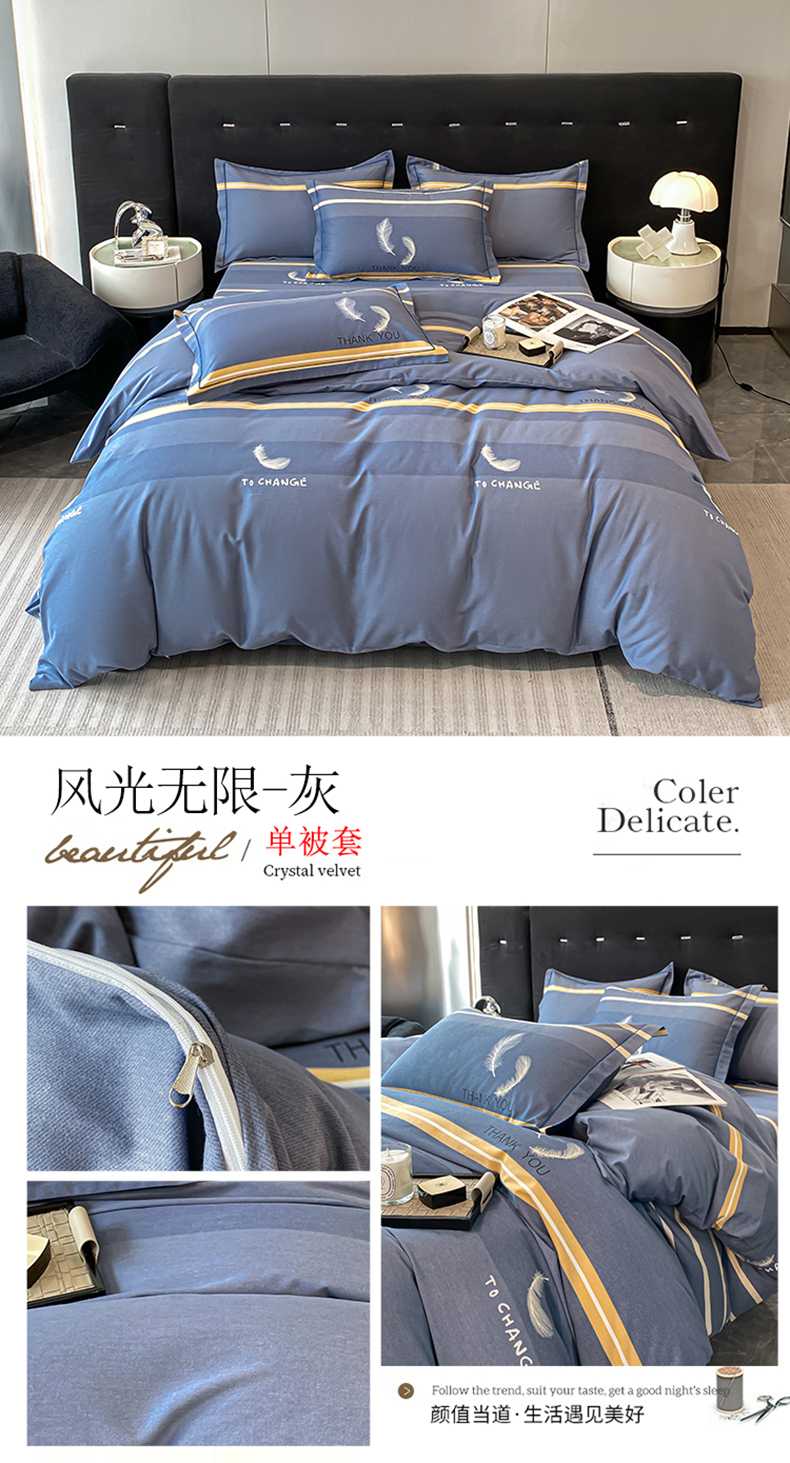 商品名称:铭成 2024新款全棉生态喷气加厚磨毛单品被套 风光无限-灰