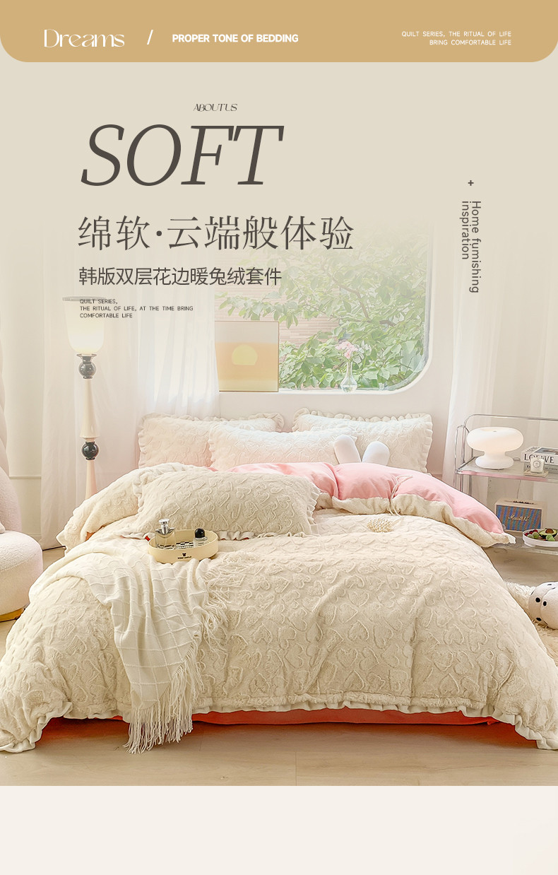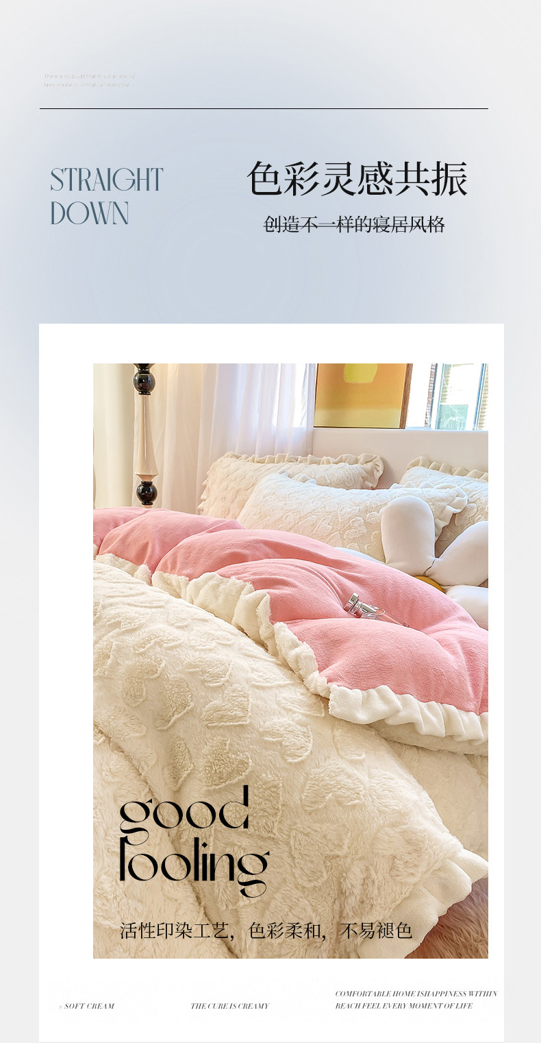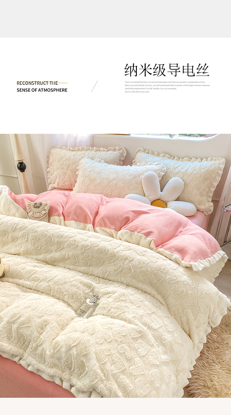 总大米家居2024款爱心兔兔绒双层牛奶绒花边雕花绒兔毛四件套多巴胺色系,多巴胺-绿,多巴胺-白,多巴胺-粉,多巴胺-黄,多巴胺-蓝