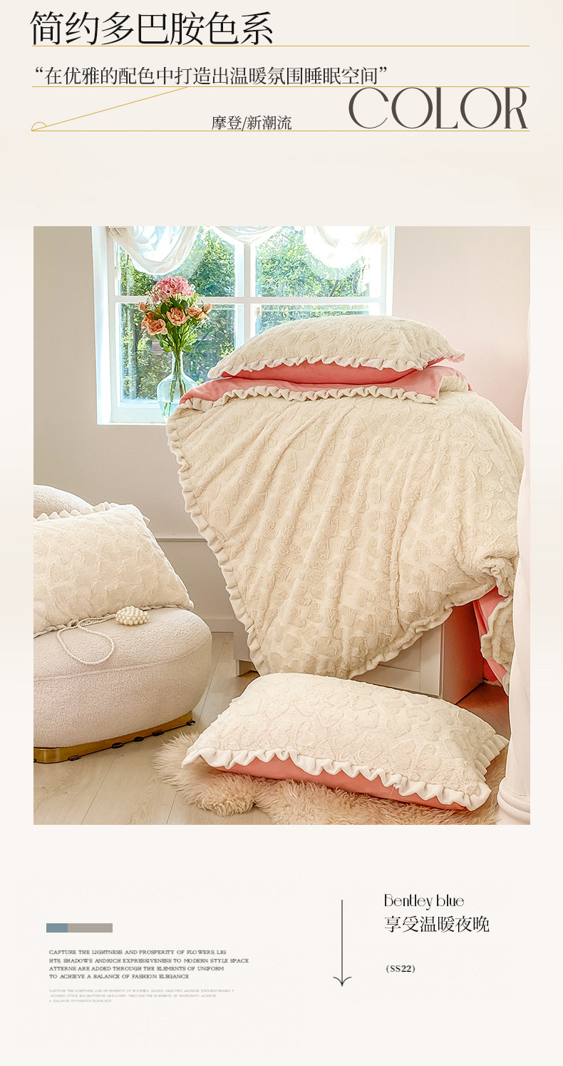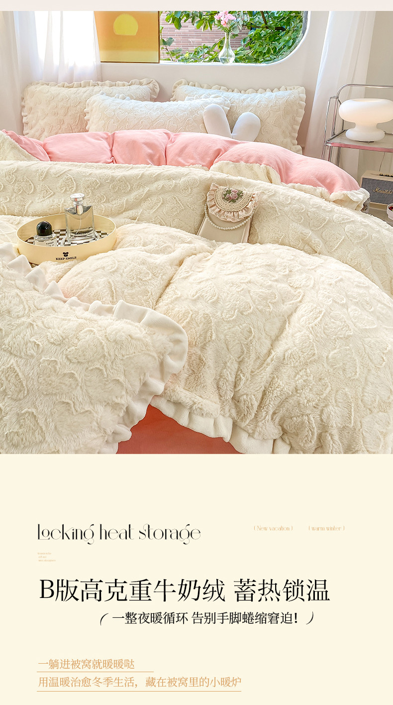 总大米家居2024新款法式小香风双层边230克雕花绒蔷薇花语系列四件套,蔷薇花语-白桃粉,蔷薇花语-海盐蓝,蔷薇花语-奶糖杏,蔷薇花语-香芋紫,蔷薇花语-雪顶白