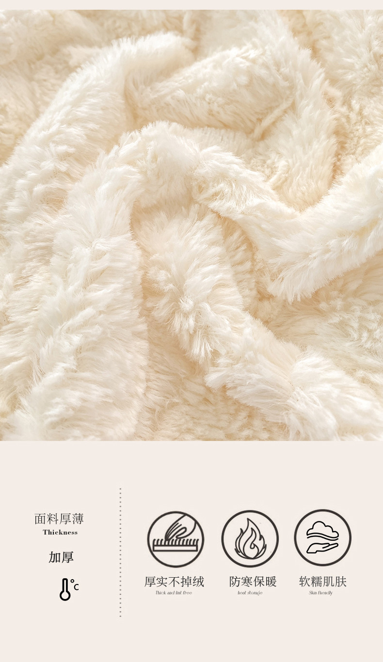 (总) 大米家居 2023高克重牛奶绒兔兔绒方格系列雕花绒兔毛四件套,方格-豆绿,方格-米白,方格-拿铁,方格-奶白粉,方格-浅蓝