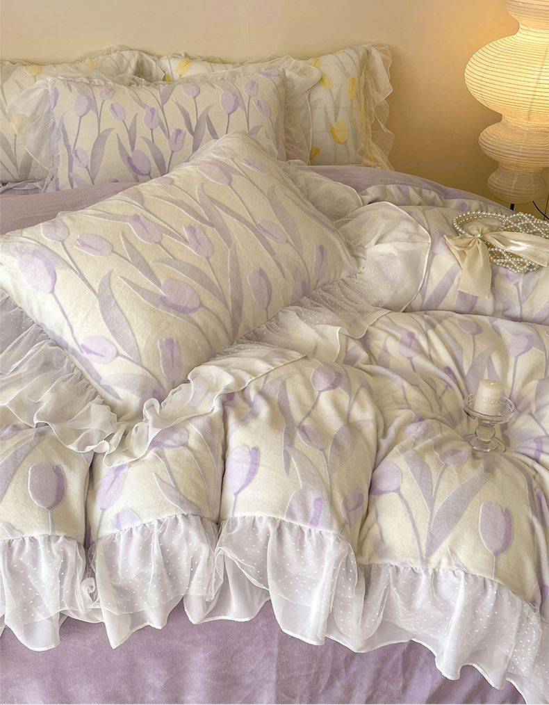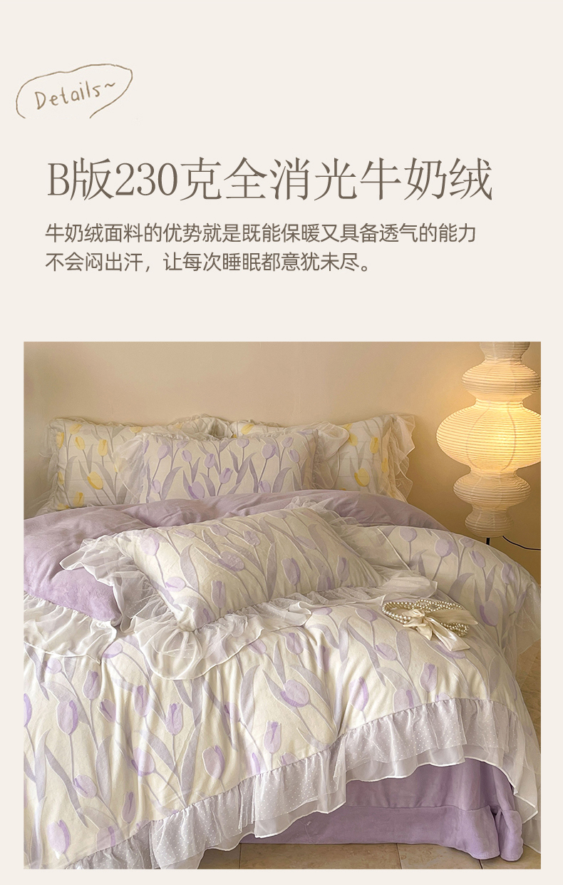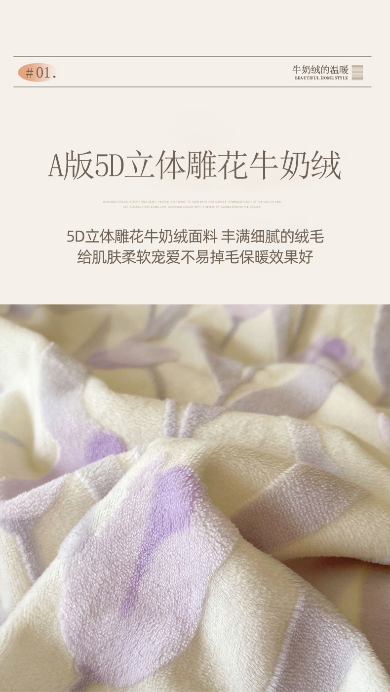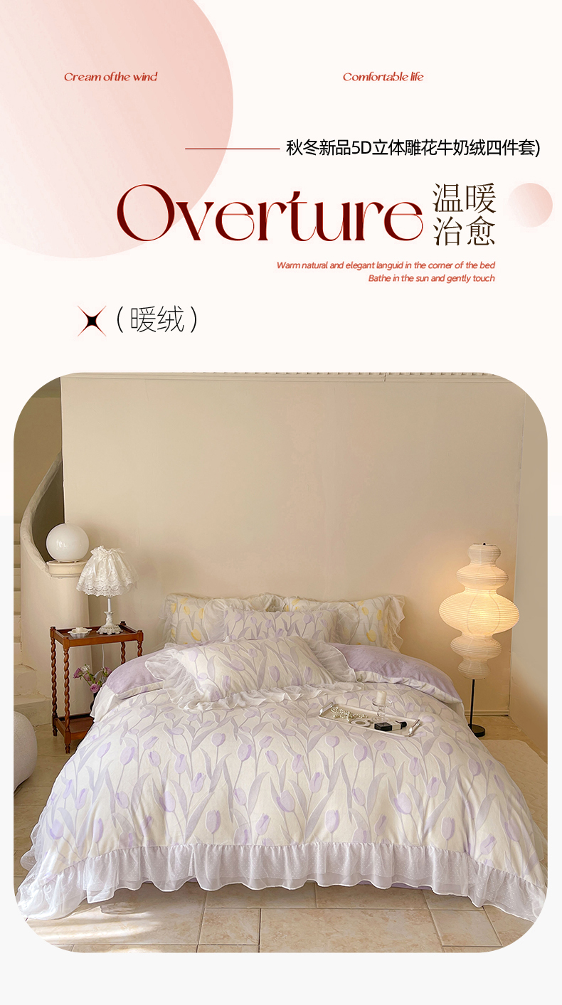 商品名称:玛奇朵2023新款秋冬新品5D立体雕花牛奶绒四件套 郁金香-紫