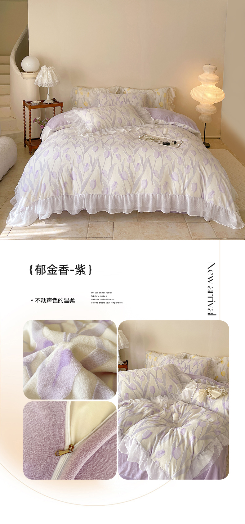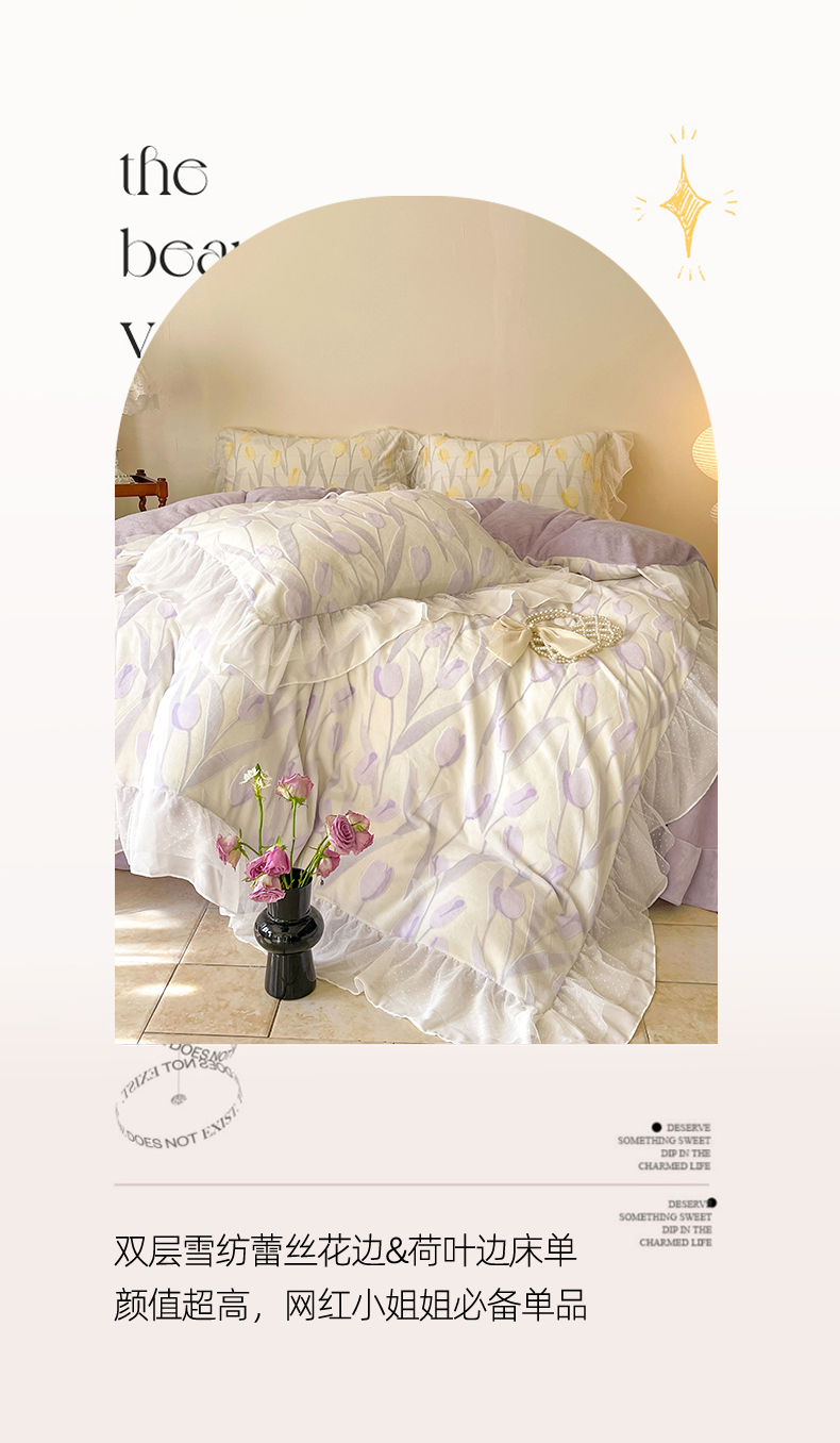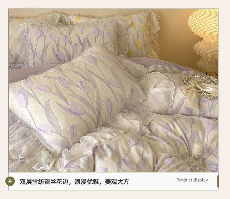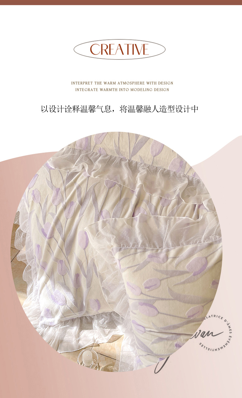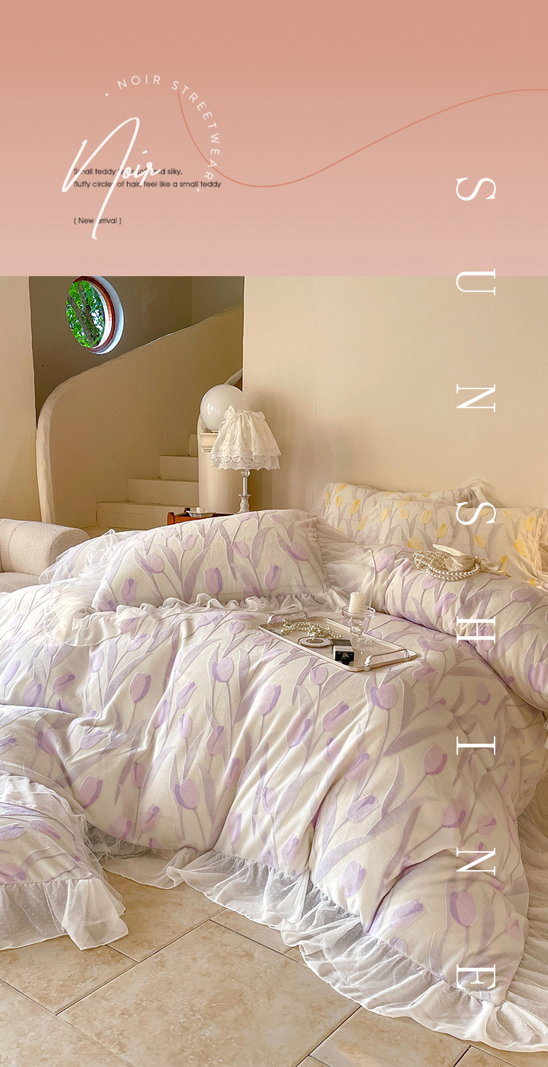 商品名称:玛奇朵2023新款秋冬新品5D立体雕花牛奶绒四件套 郁金香-紫