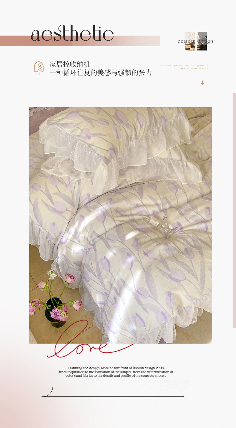 (总)玛奇朵 2025新款韩系少女全棉立体提花四件套-,青纱粉黛