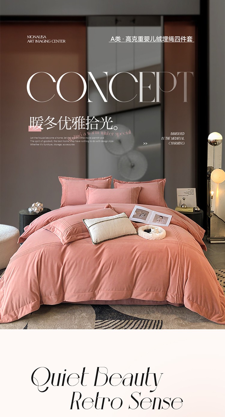 (总)嗯呢家纺 2024新款A类高克重全消光婴儿绒刺绣双拼四件套,豆沙-蜜合灰,豆沙-银灰,漫灰-蜜合灰,莫兰迪粉-漫灰,浅可可-弗肯红,杏仁-蜜合灰