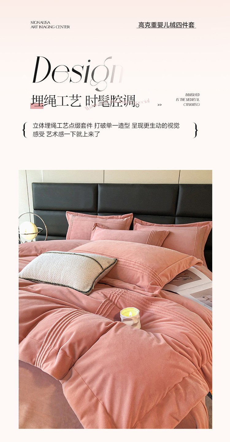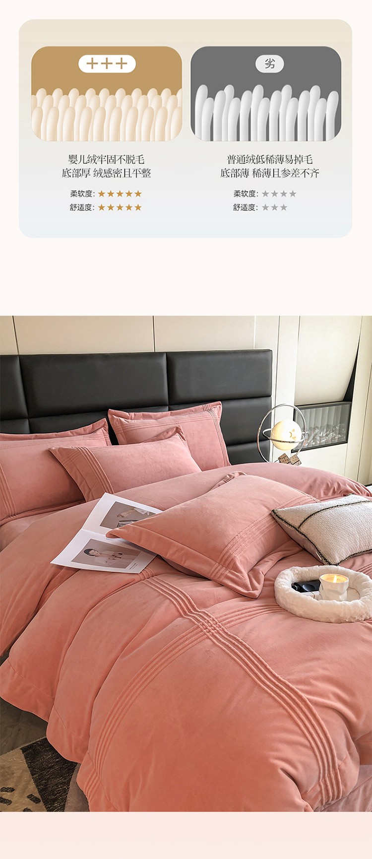 (总)嗯呢2023新款A类高克重全消光婴儿绒牛奶绒埋绳轻奢四件套,茶粉,丁香紫,湖兰,藕粉,天兰,烟灰