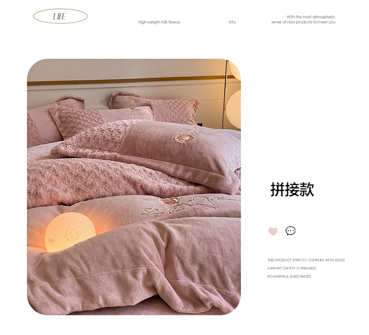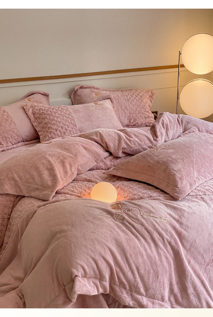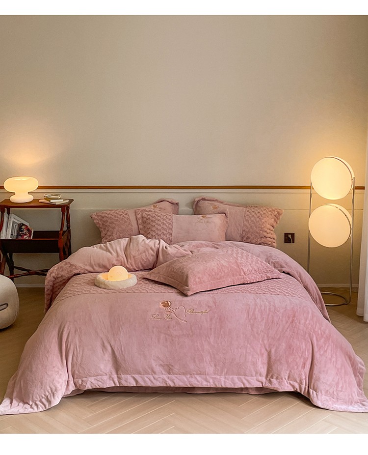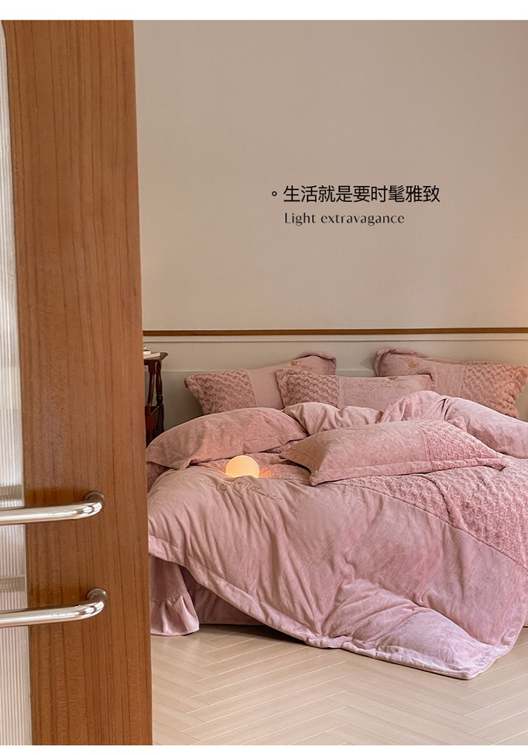 (总)嗯呢家纺 2024新款A类高克重全消光韩版雕花贴布绣牛奶绒四件套-玫瑰恋人,玫瑰恋人-湖水蓝,玫瑰恋人-米红,玫瑰恋人-藕粉,玫瑰恋人-樱花粉
