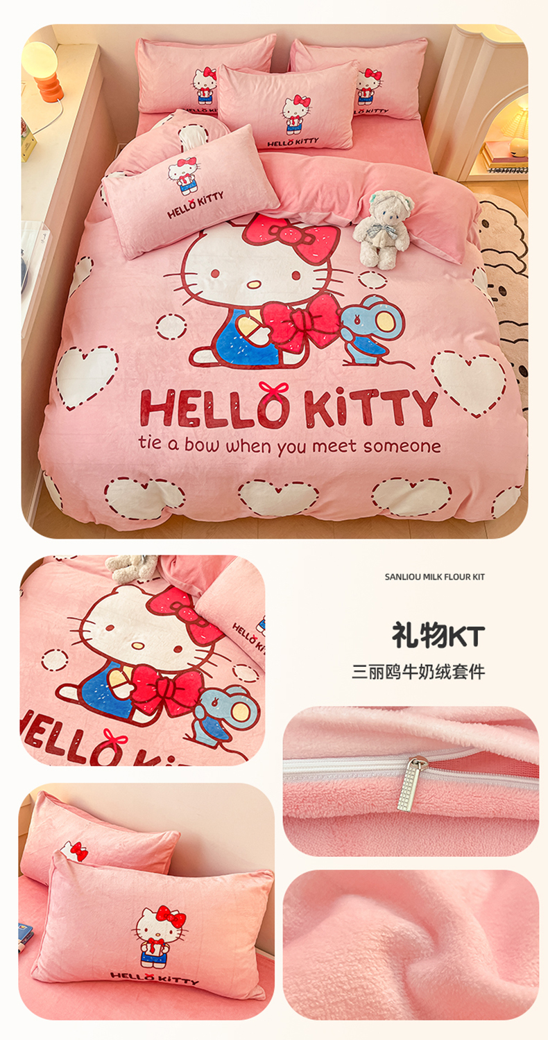 当前位置: 91家纺网 > 商品网购 > 床品套件 > 四件套 > 牛奶绒四件套 > 孩子王 2023正版授权直播三丽鸥卡通大版双面加厚牛奶绒系列 礼物KT