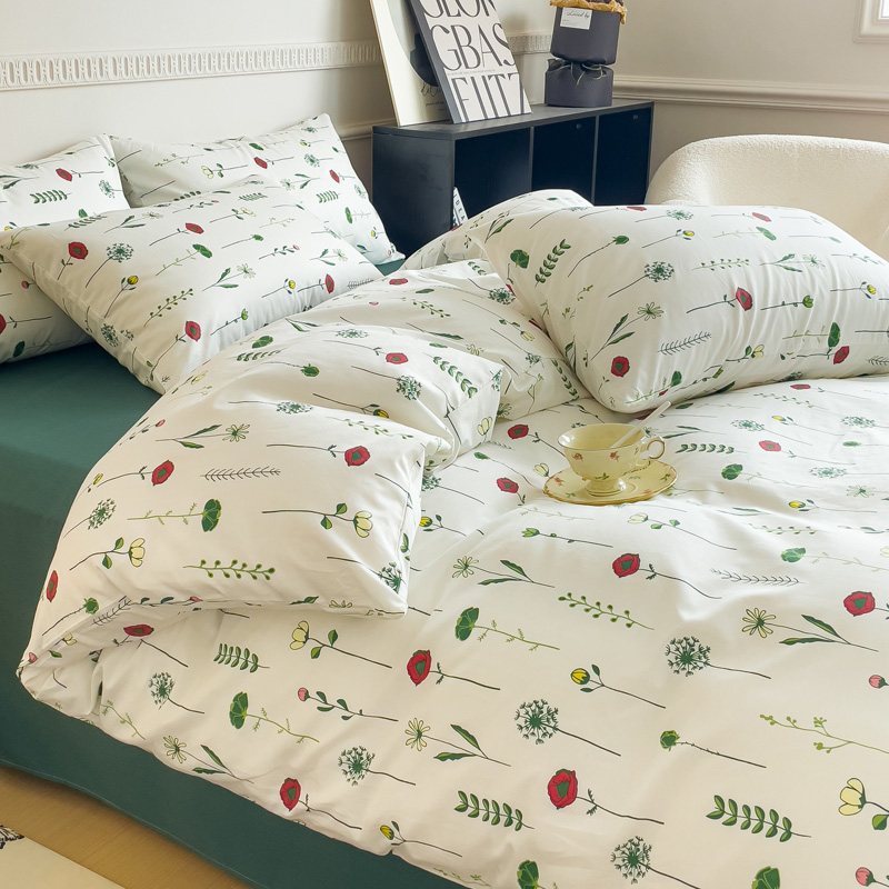 畅畅家纺 2023新款13372全棉小清新简约系列四件套 清野