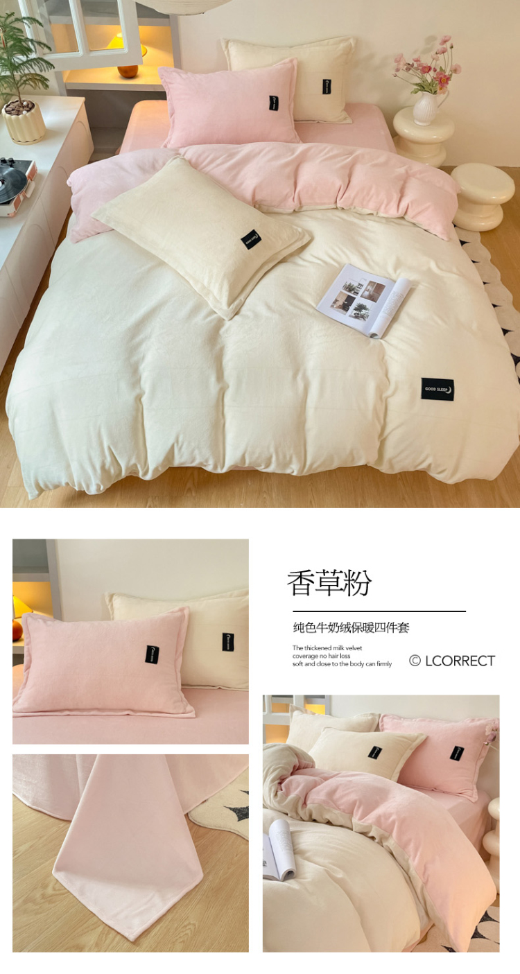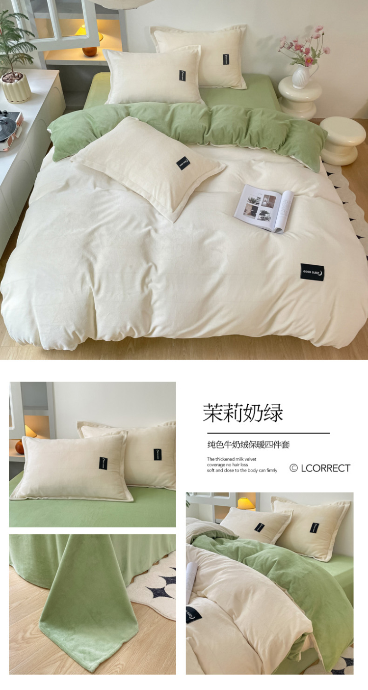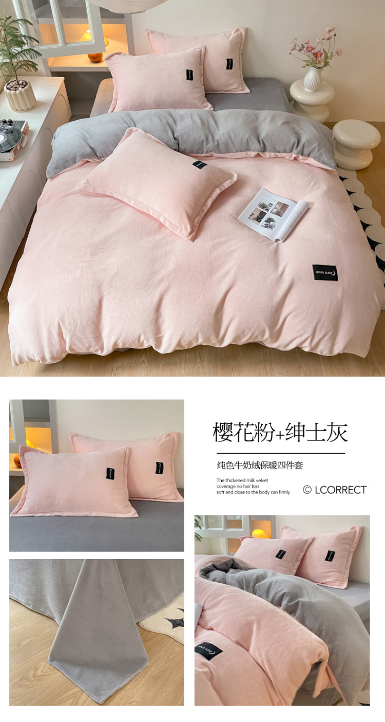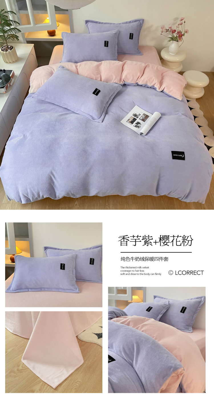 (总)柒月 2023新款纯色牛奶绒四件套