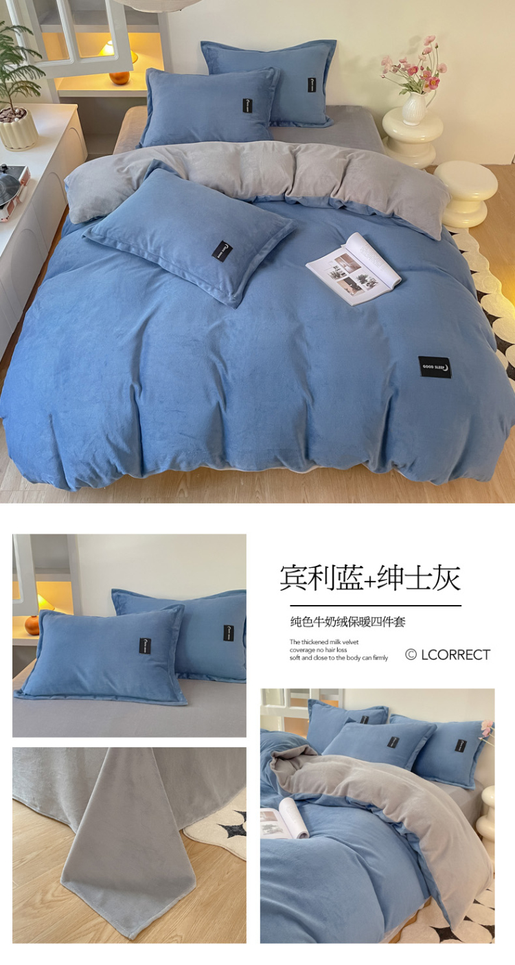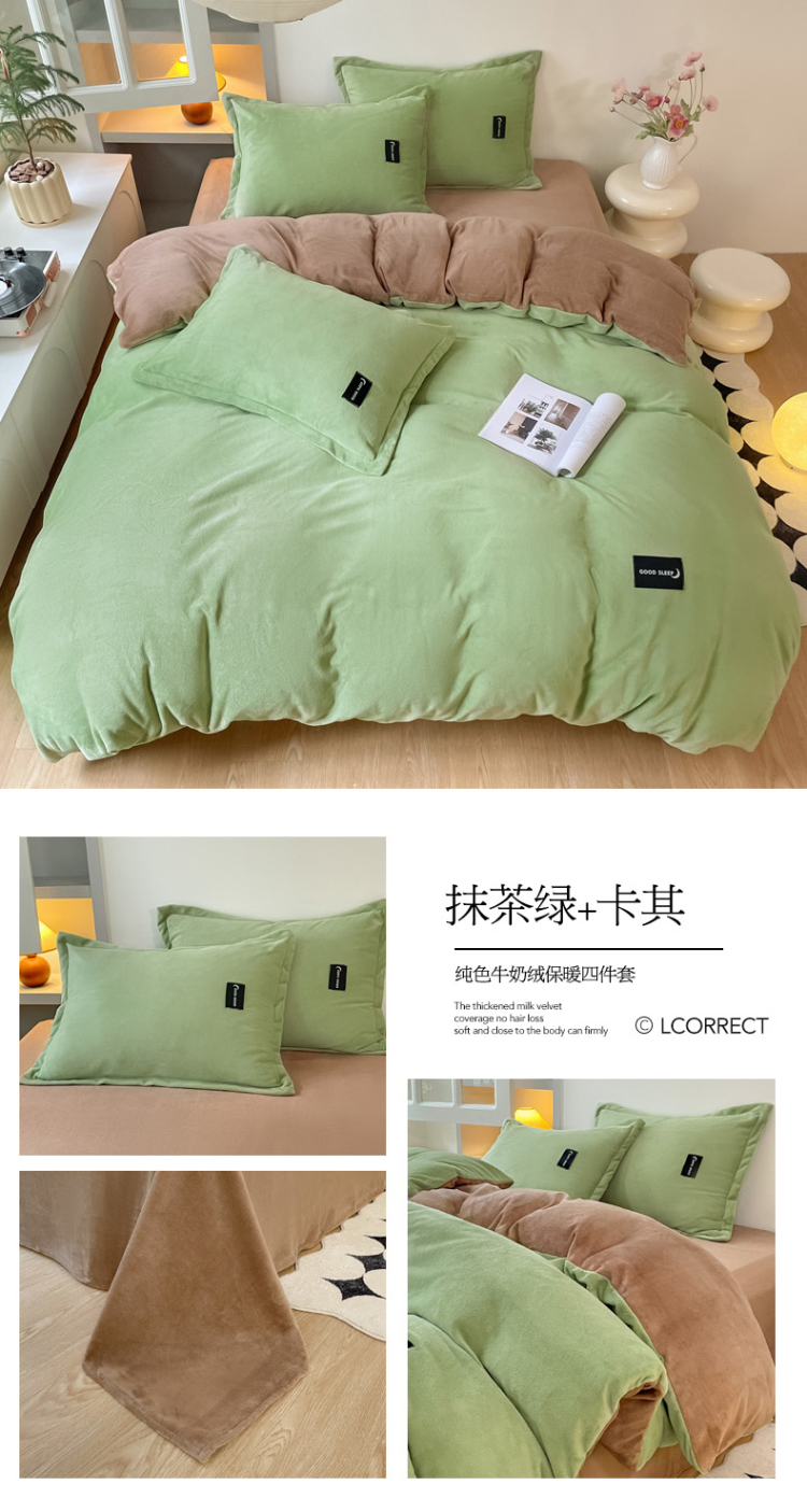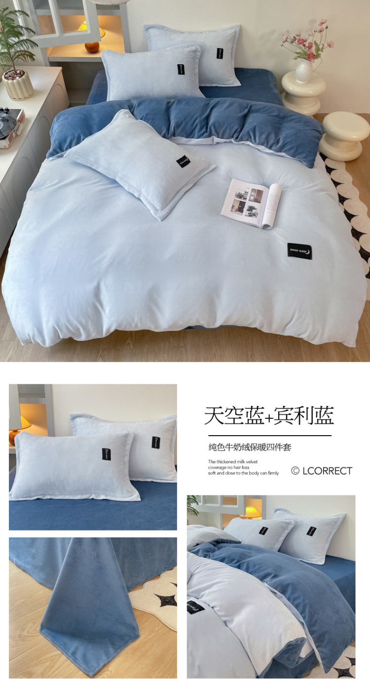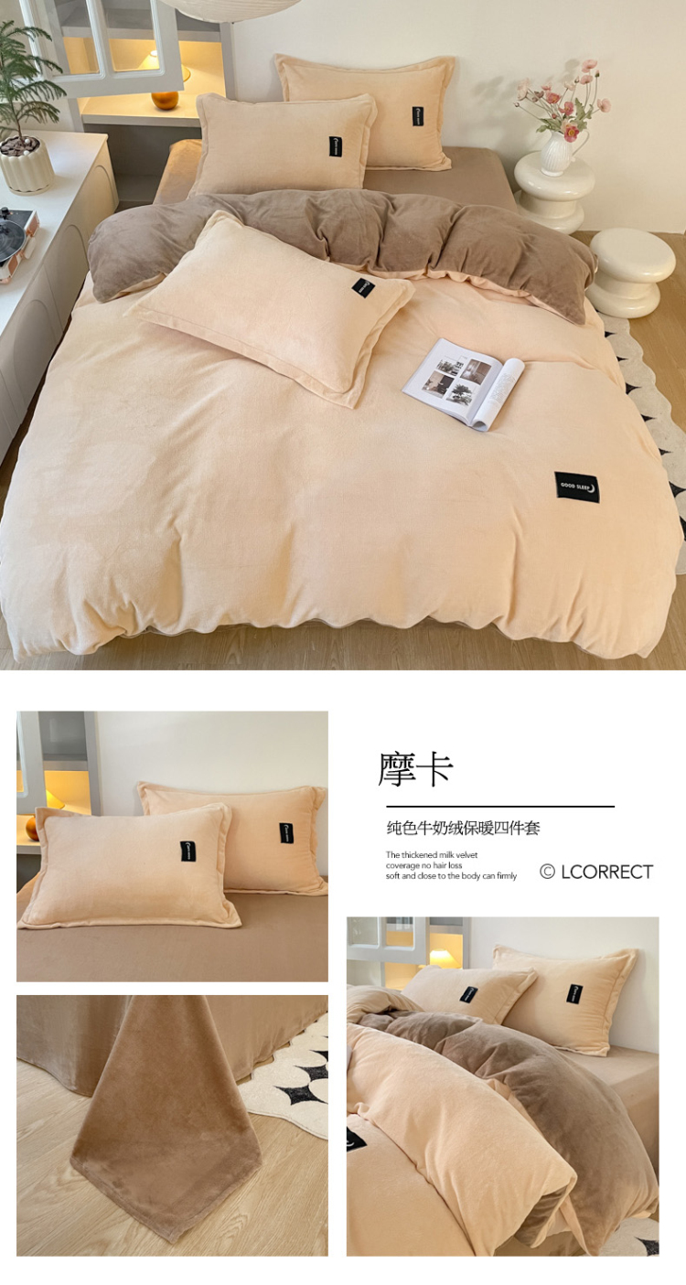 (总)柒月 2023新款纯色牛奶绒四件套