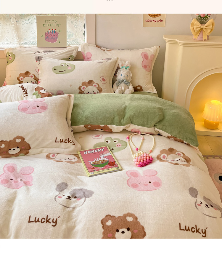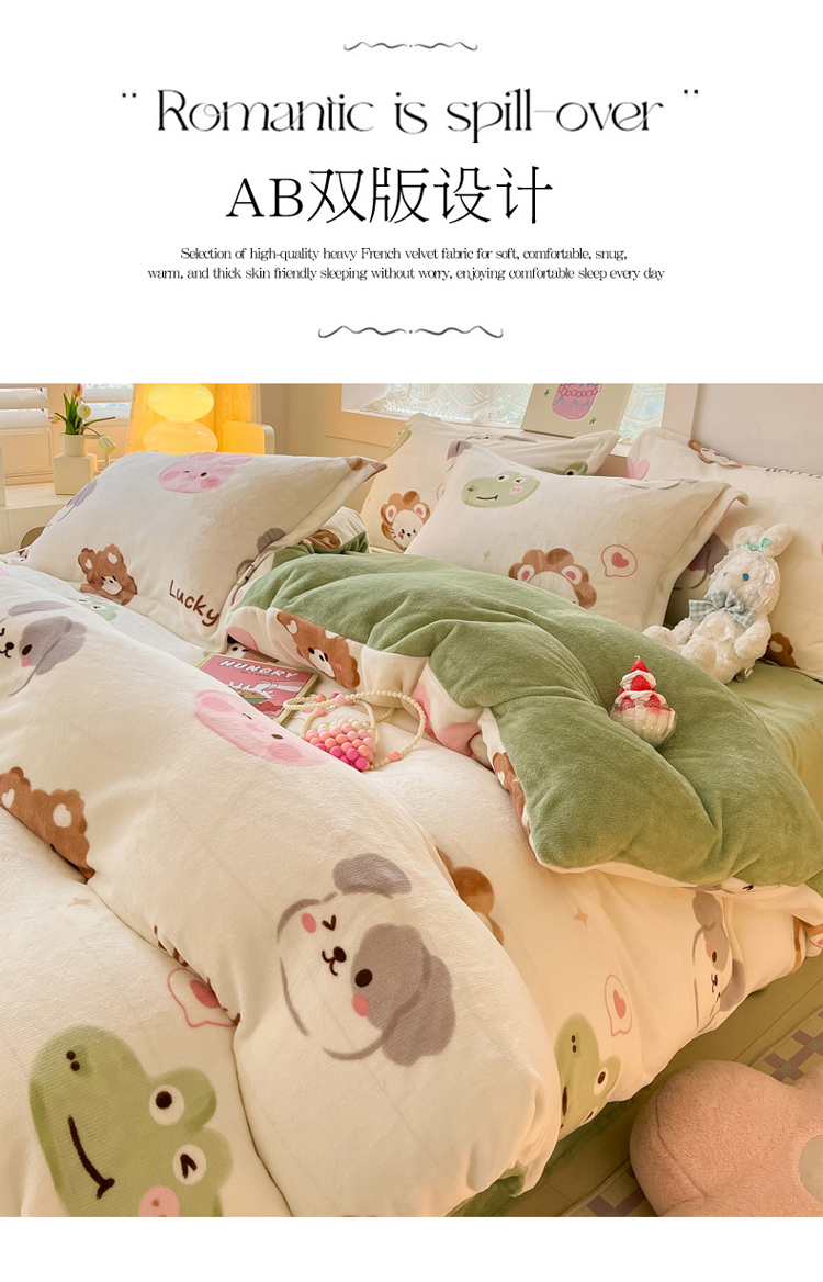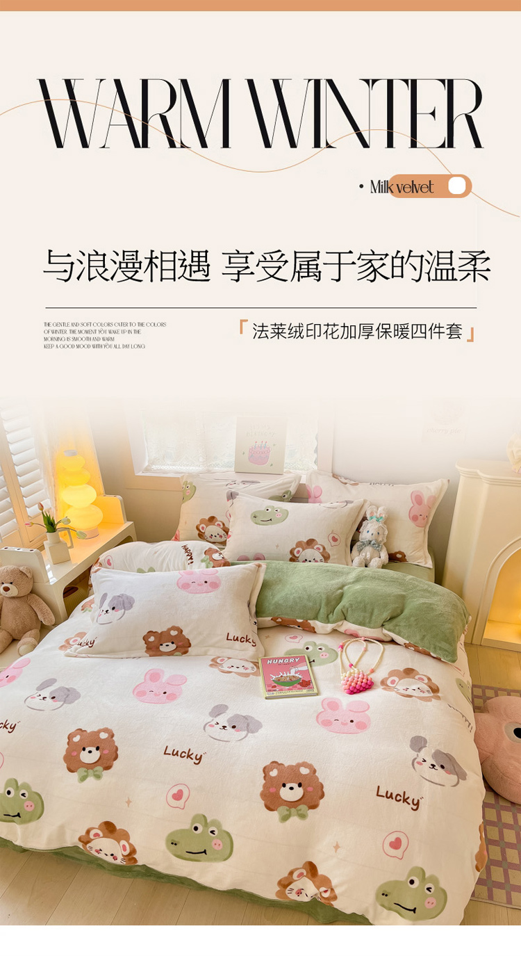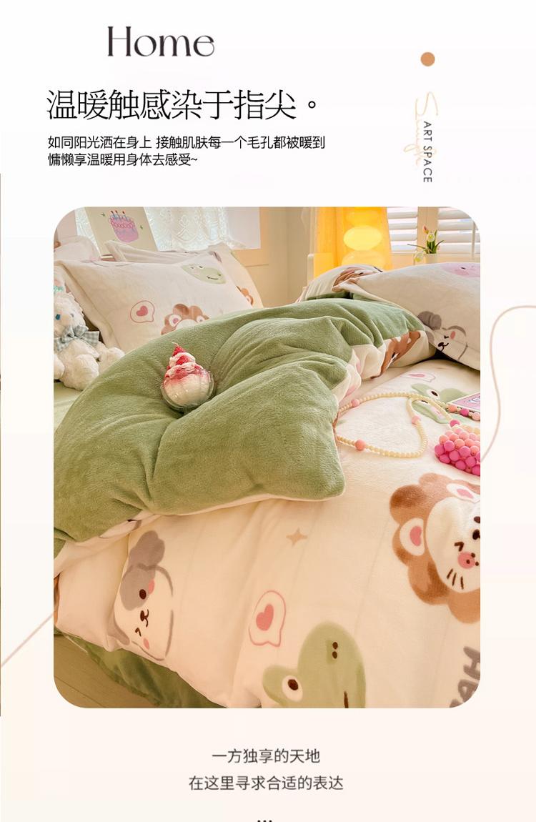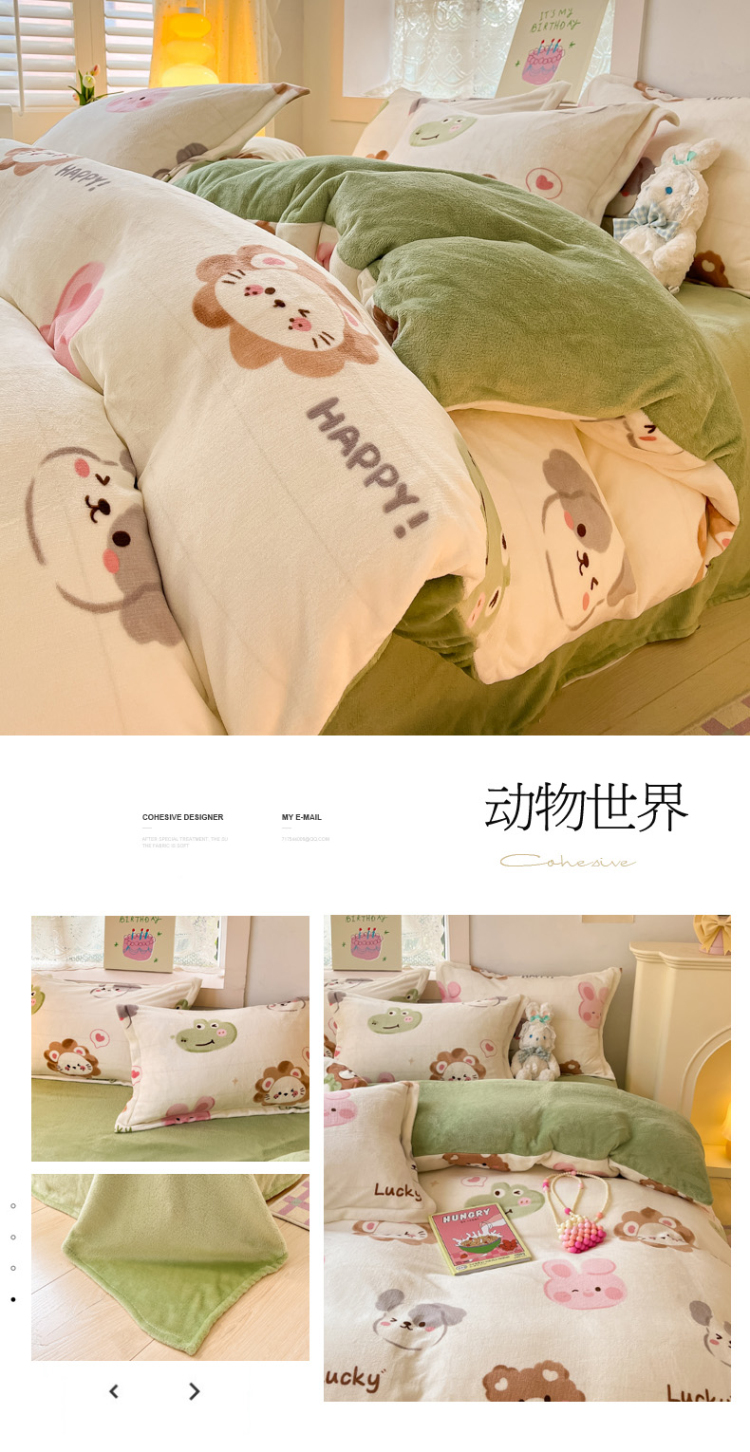 当前位置: 91家纺网 > 商品网购 > 床品套件 > 四件套 > 法莱绒四件套 > 柒月家居 2023新款小清新法莱绒四件套 动物世界